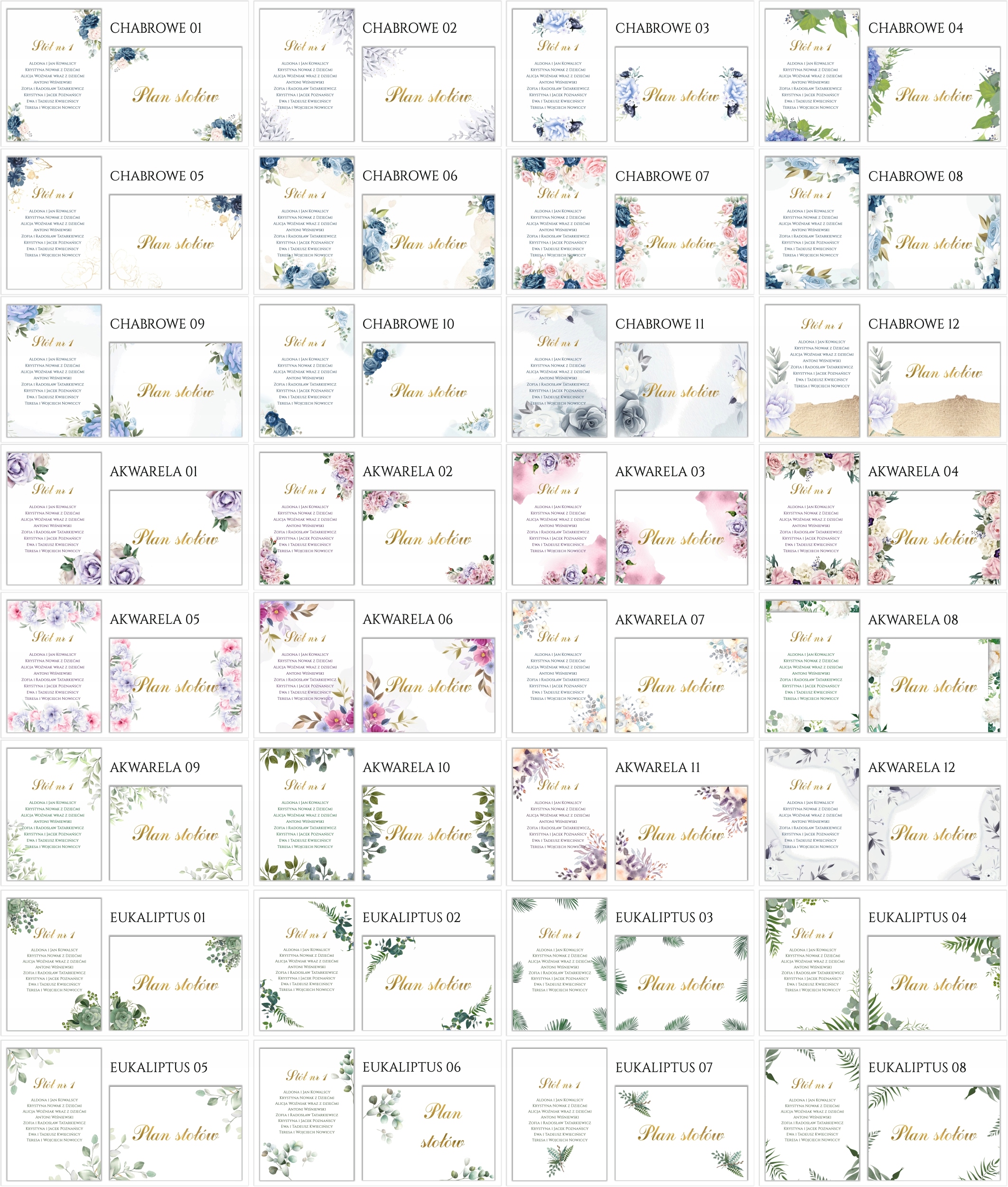 План весільного столу, який відповідає нашим дизайнам весільних запрошень, доступний на інших аукціонах. Ми друкуємо плани столів на щільному та жорсткому крейдованому папері вагою 350 г у форматі А4 (30x21 см), припускаючи, що одна картка містить список людей з одного столу.