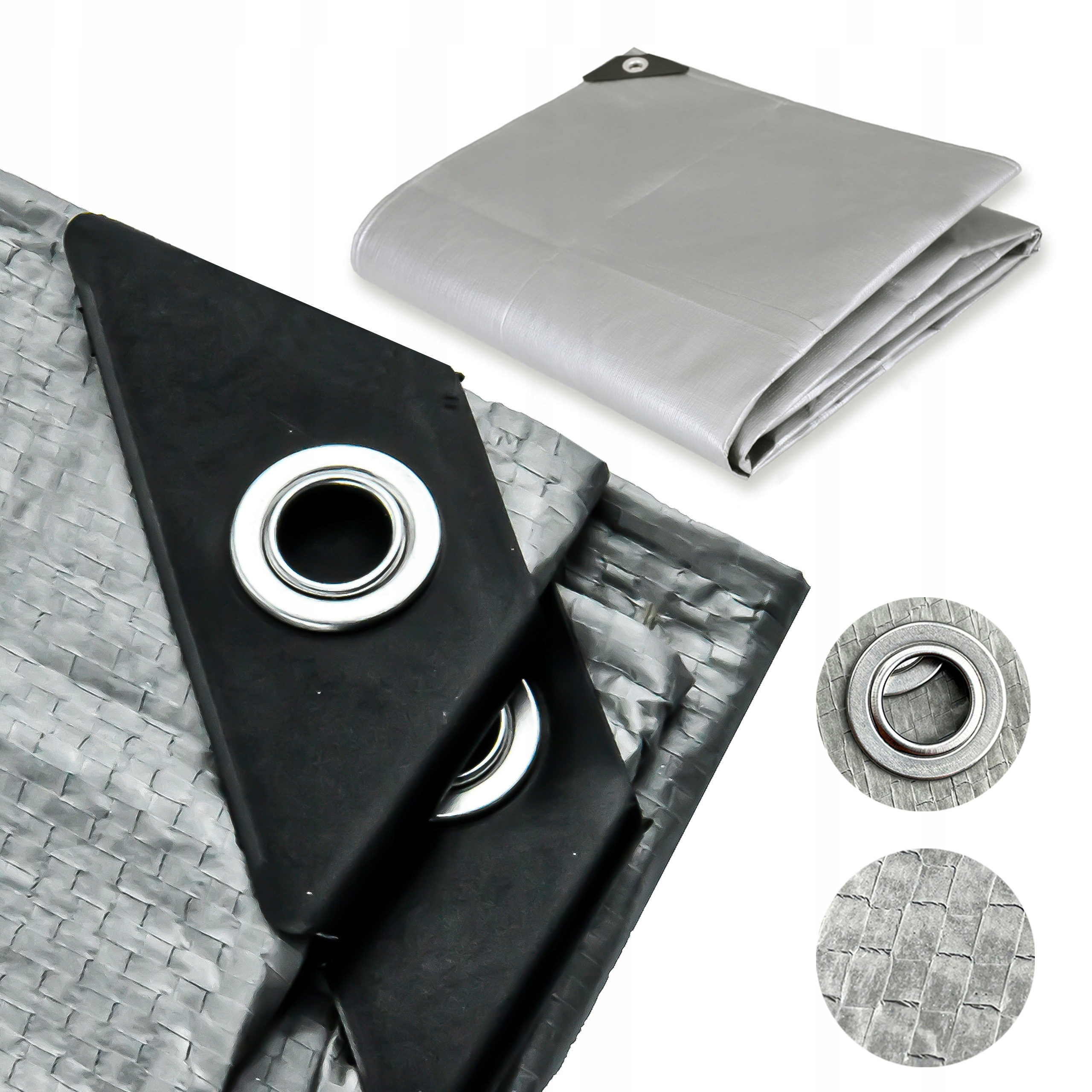 PLANDEKA WZMACNIANA GRUBA 120G NA TARAS BALKON DO ALTANY UV 6X8M SREBRNA