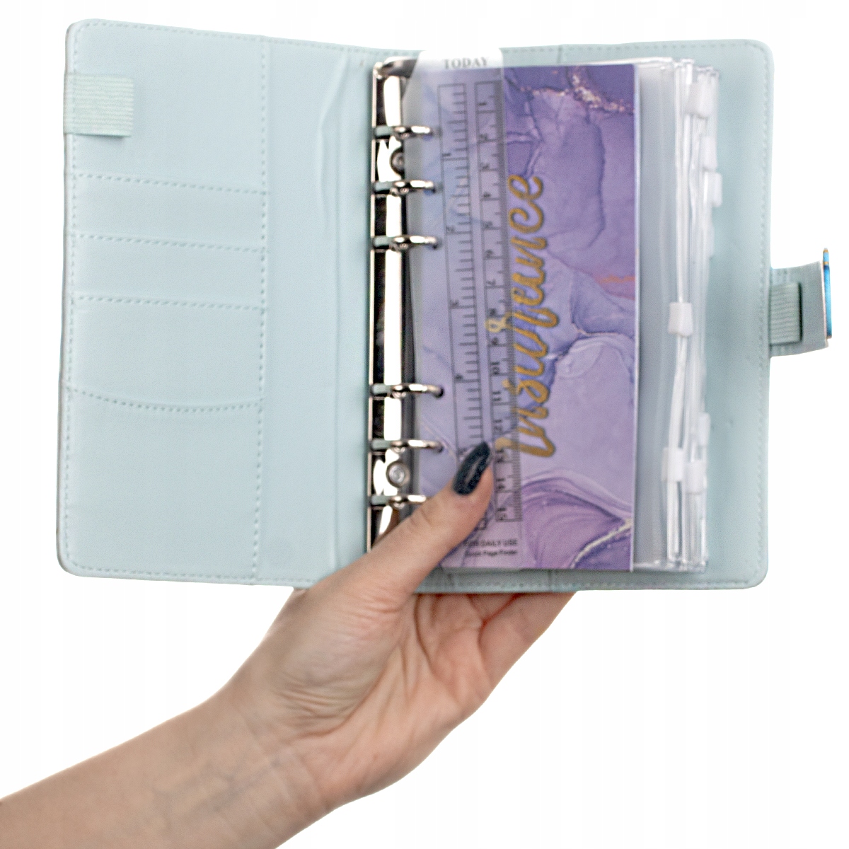 Планувальникмаєідеальні розміри, щоб завжди мати його з собою. Розміри дозволяють помістити його в будь-яку сумочку чи кишеню, дозволяючи контролювати свої фінанси в будь-який час.