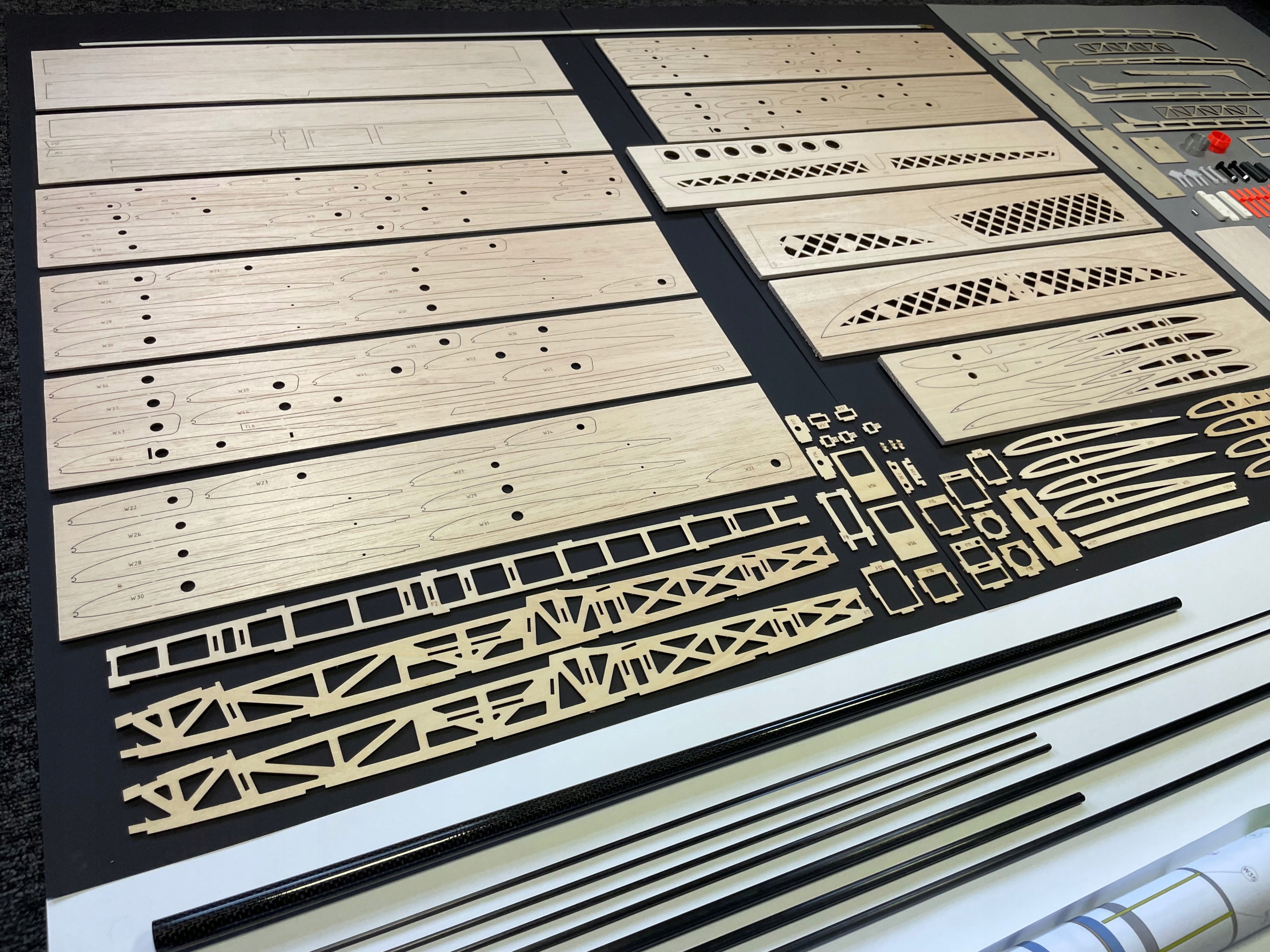 Міцний і легкий конструкція з використанням бальзового дерева та елементів з вуглецевого волокна. Зліт із гумового залу забезпечує масу задоволення та довгі термальні польоти.