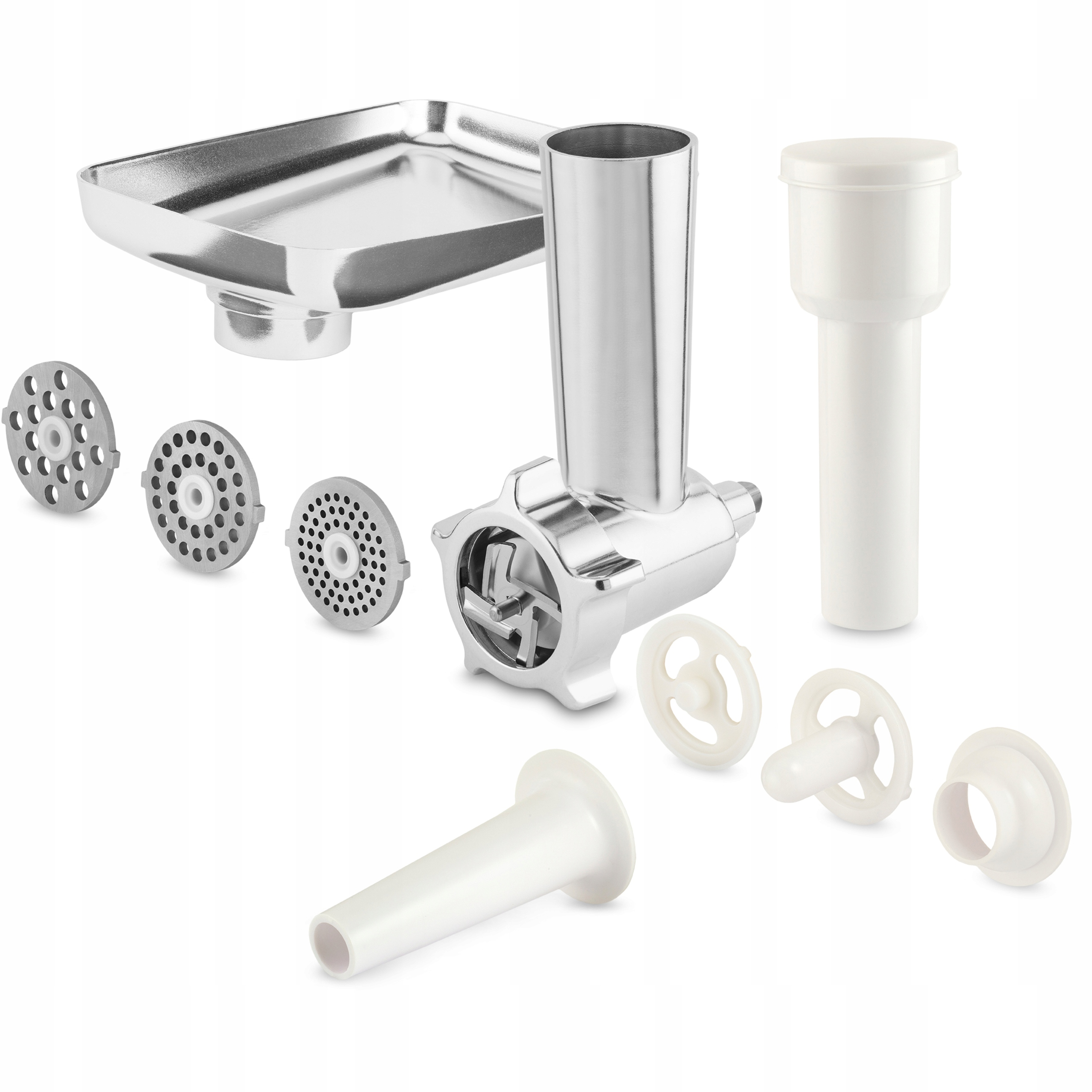 Однією з численних функцій кухонного робота Catler KM 8013 - це м'ясо шліфування. Набір із пристроєм включає спеціальну закуску, ножі різної товщини та спеціальний штовхач для легкого шліфування. Якщо ми мріємо про домашню ковбасу, ми також можемо використовувати спеціальну пораду для начинки.