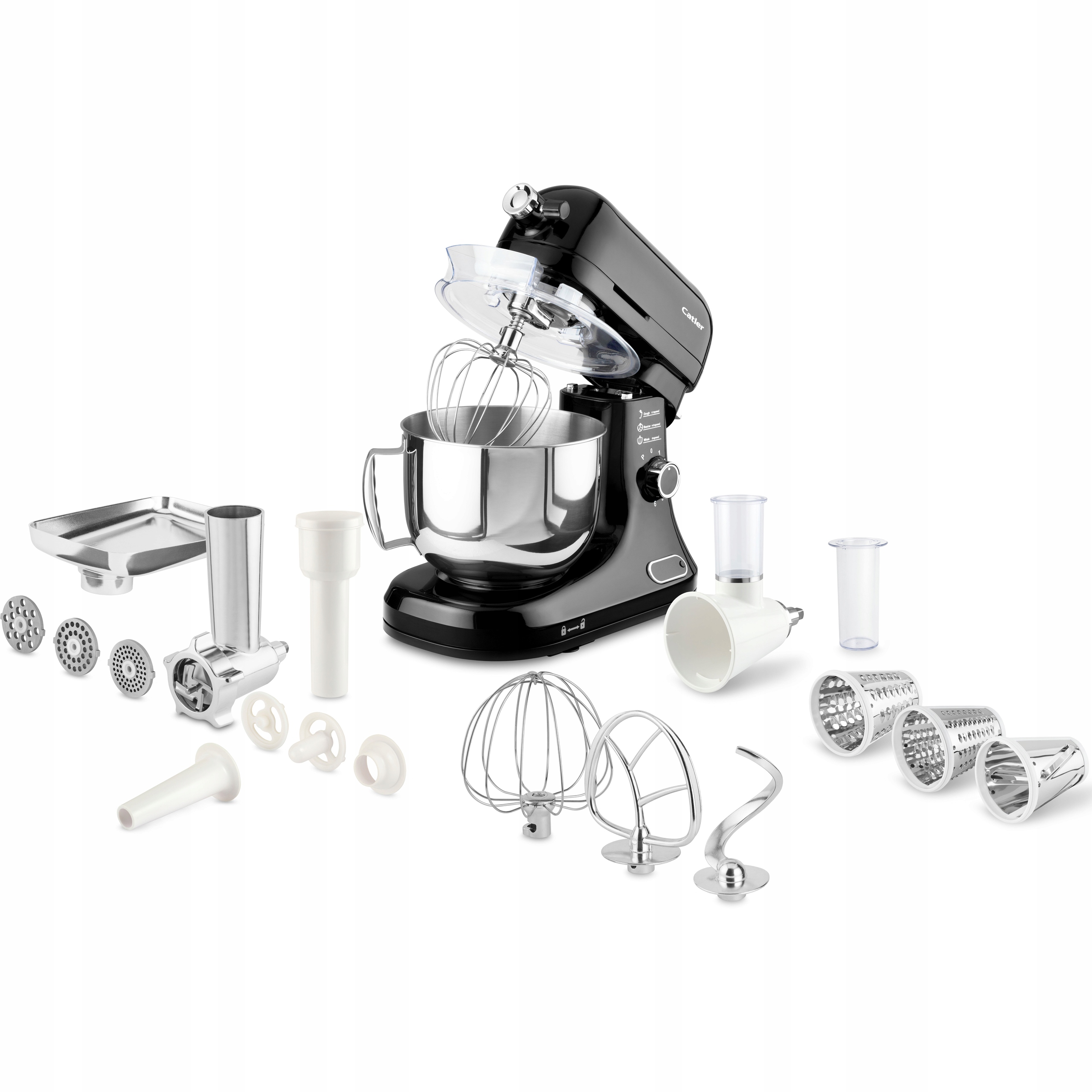 Якщо нам потрібне універсальне змішувальне обладнання, збивання, замішування або навіть виготовлення домашніх ковбас, кухонна робота Catler KM 8013, безумовно, зачарує нас. На додаток до широкого спектру функції, він також вразить повністю металеву структуру, включаючи кабель. Оснащений широким набором аксесуарів та потужним змінним поточним двигуном 1200 Вт, він може обробляти навіть найскладніші торти. У нас є великий контейнер з 5 літрів із захисним покриттям. Пристрій має шість різних швидкостей, імпульсна функція та планетарна система замішування.