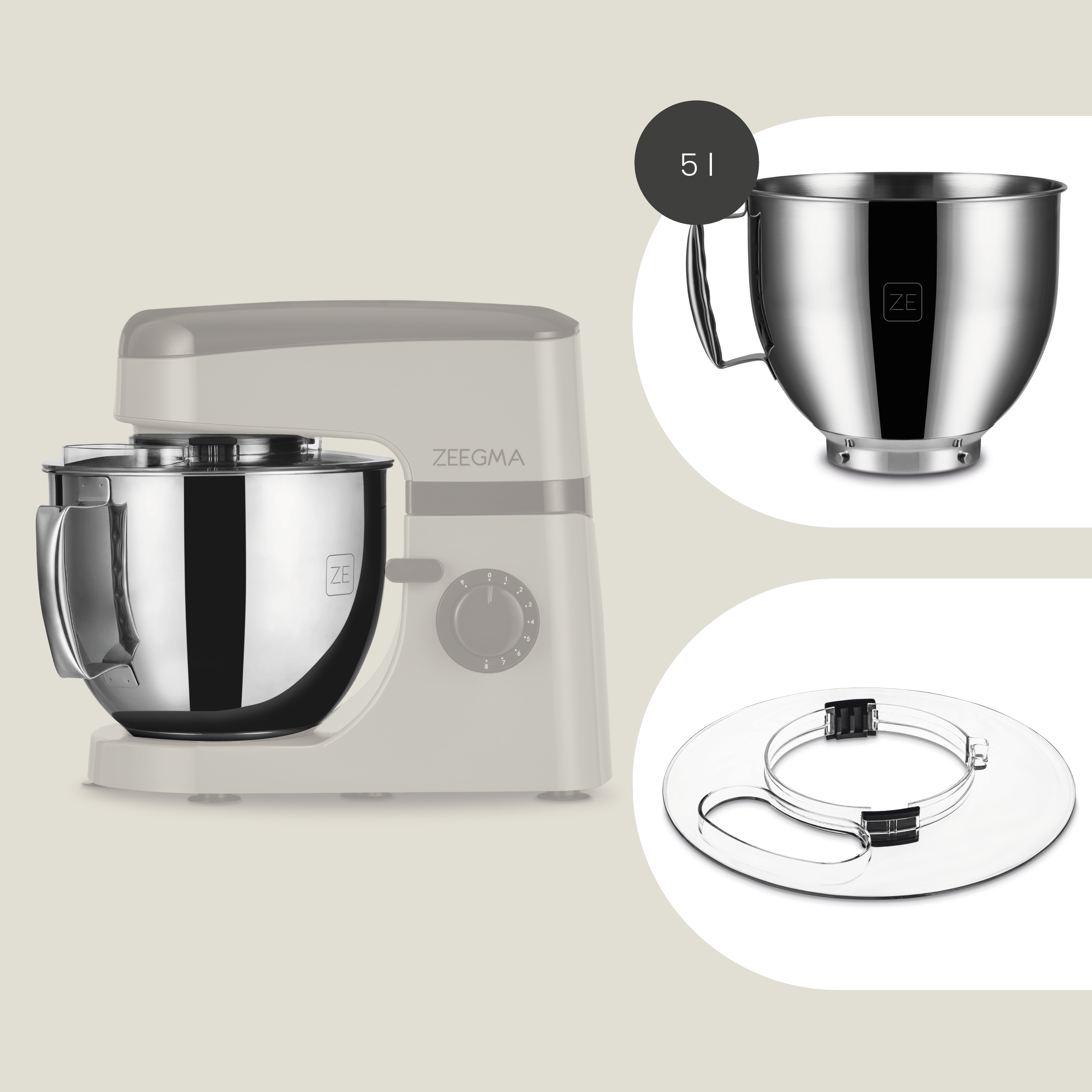 В набір входить миска 5 л високої якості > нержавіюча сталь. Це ідеальне рішення, яке дозволить вам легко готувати навіть великі порції тіста.