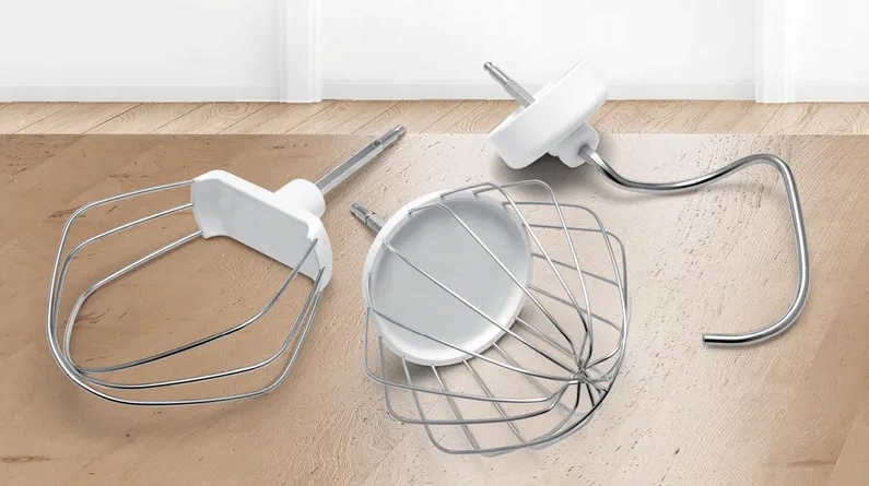 Набір із трьох міксерів підходить для широкого спектру застосувань і гарантує ідеальні результати. Завдяки цим аксесуарам ви легко зможете приготувати безе, ніжний пиріг і важке дріжджове тісто. Усі вони можна мити в посудомийній машині.