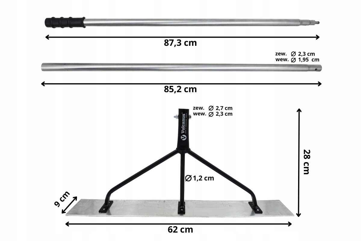 Польща, широка смуга (скребок) для бетону, вулкануса® vun280r спінс 62 см + вал 162 см