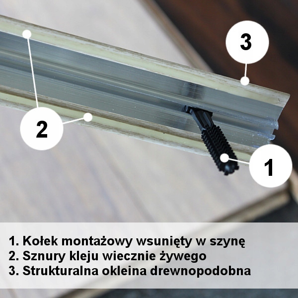 - перший метод полягає в тому, щоб приклеїти смугу до підлоги панелей за допомогою клею HOT-METL (без свердління), це особливо бажано з підігрівом підлоги. Використовуваний клей зберігає свої пластичні властивості протягом усього терміну використання, клей також є герметиком, що усуває ефект розтріскування та захищає шви поверхонь від вологи та бруду,