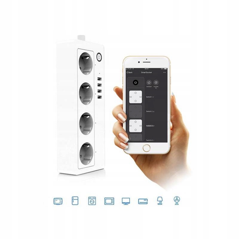 Інтелектуальний подовжувач, який дозволяє підключати до нього будь-яке обладнання (наприклад, побутову техніку) і керувати ним з будь-якої точки світу за допомогою безкоштовного мобільний додаток на вашому телефоні.
