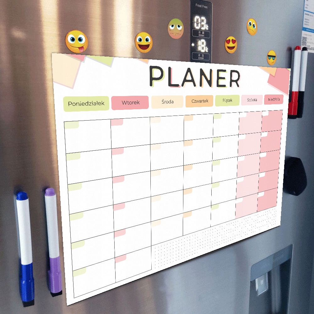 Планувальник оснащений магнітною підкладкою, щоб ви можна поставити його на холодильник або будь-яку іншу металеву поверхню.