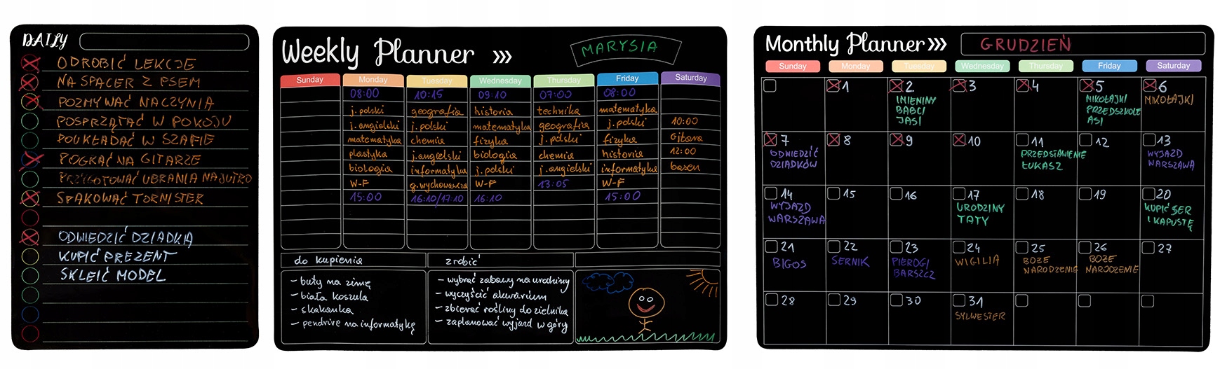 - 3 магнітні дошки для сухого стирання - планувальник-холодильник