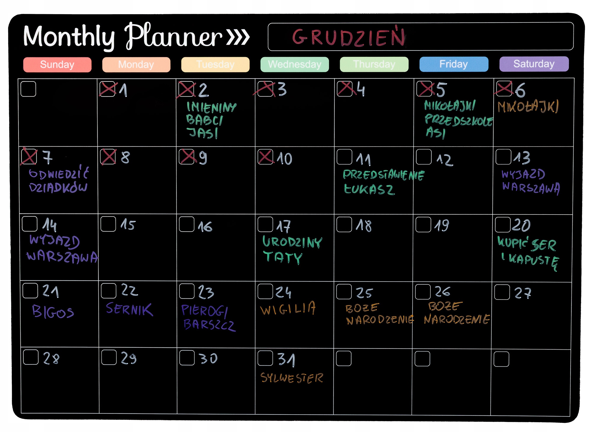 - щомісячний планувальник