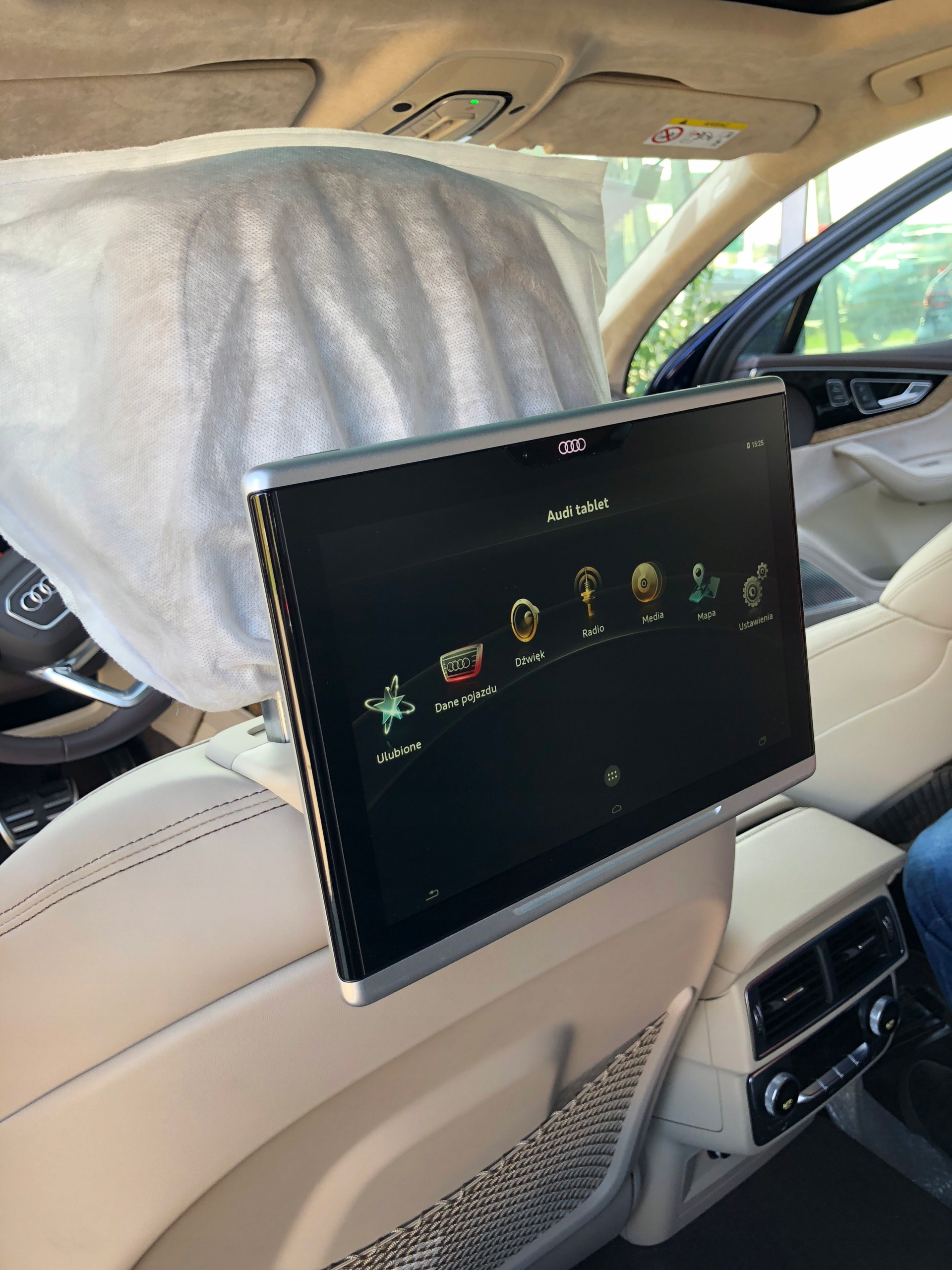 Новий планшет Audi SmartDisplay оснащений процесором Nvidia Tegra 4 та 10,2 -дідом. Тадр був обладнаний дисплеєм з матовою матрицею (вільне від відбиття джерел світла), головне завдання якого полягає в тому, щоб бути опором шокуванню під час руху. Екран також не повинен руйнуватися під час можливого дорожнього удару. Пристрій був розроблений як розважальний центр для пасажирів, розташованих на задній частині автомобіля. Це також дозволяє змінити пункт призначення (орієнтир) та надсилати ці дані на основну консоль спереду. Використовуючи планшет, ви також можете використовувати Інтернет через Wi-Fi, вбудований у транспортний засіб, контролювати температуру та контролювати мультимедіа. На задній частині планшета є ряд розетків, включаючи порт зарядки, micro-USB, а також вхід навушників.