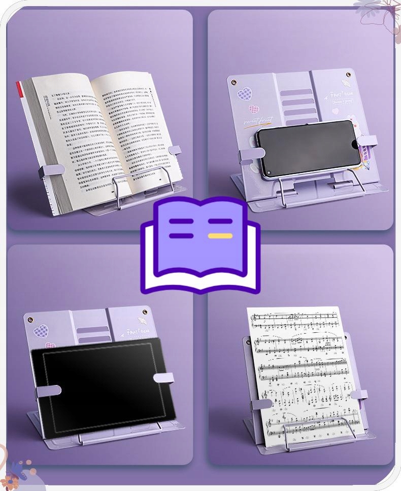 Стенд дозволяє регулювати кут нахилу від 0 до 60 ° , а бічний затискач може бути обертається з 180 ° , що дозволяє зручно регулювати положення читання. Це ідеальне рішення для книг, планшетів, iPad, підручників, рецептів або музичних нот .