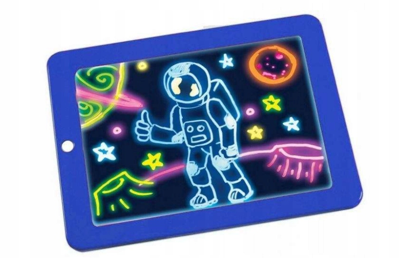 Чарівний планшет для малювання з підсвічуванням Magic Pad - гарантія того, що ваша дитина розвиватиме свою уяву, навчиться писати, рахувати та водночас весело проведе час. Світлодіодним підсвічуванням малюнки та роботи вашої дитини будуть підсвічуватися. У набір також входять 3 нетоксичні двосторонні неонові маркери.