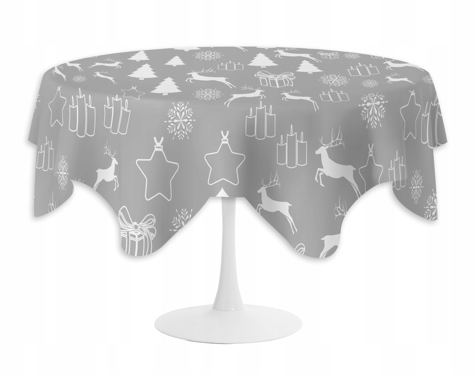 СКАТЕРТИНА КРУГ СТІЙКИЙ ПЛЯМ 140 СМ - ВІЗЕРУНКИ - СІРИЙ ОЛЕНЬ
