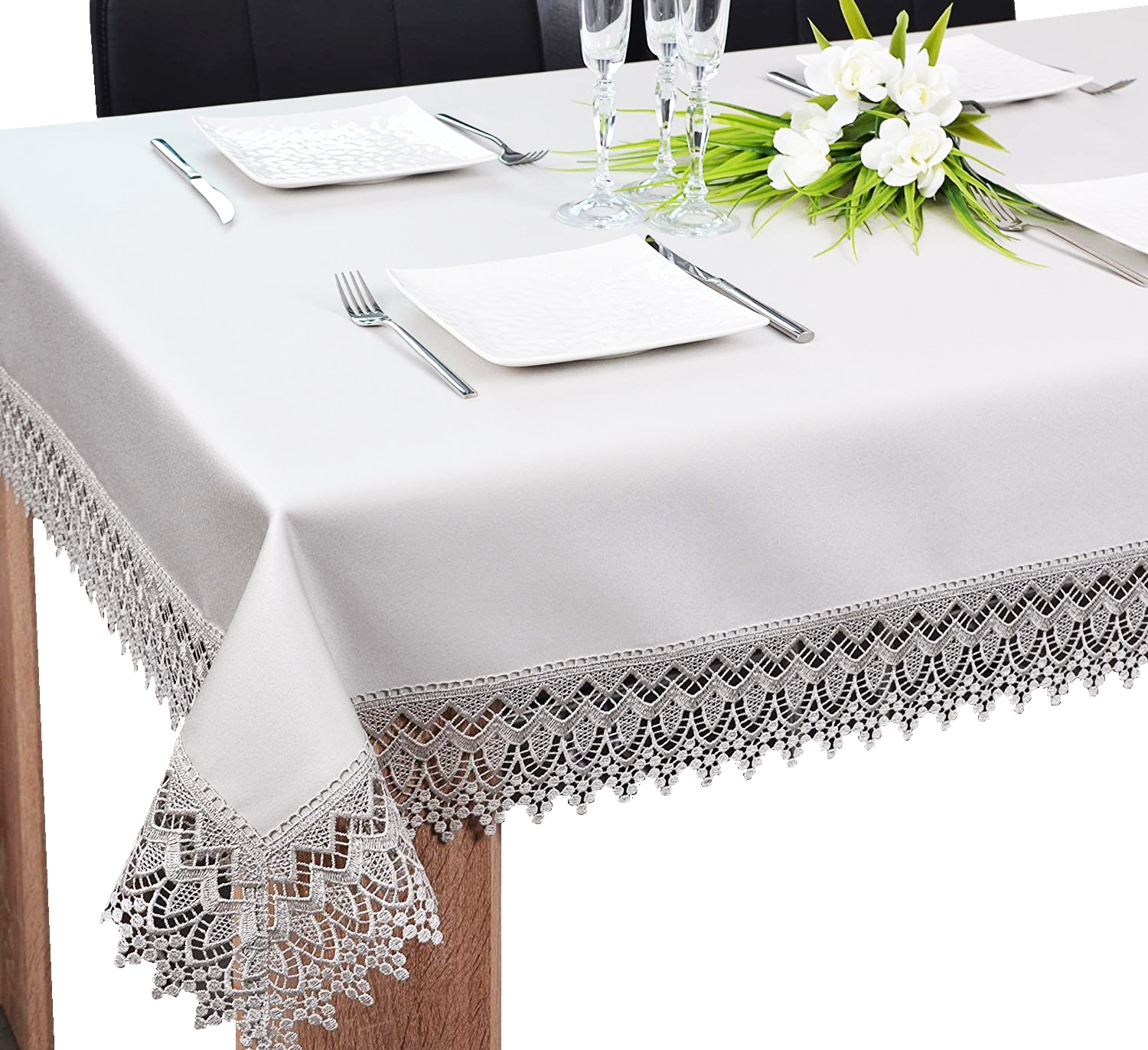 Скатертина плямостійка 140x300 з БІЛОГО гіпюру