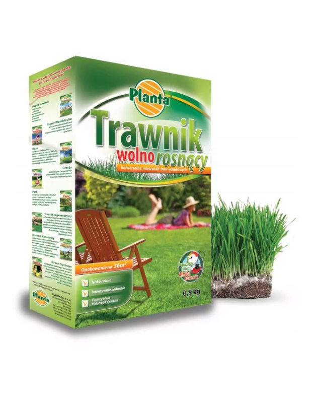 Повільно зростаючий газон це композиція газонних травз помірними та низькими вимогами до ділянки, що робить його ідеальним для будь-якого типу поверхні, як у місцях з інтенсивним сонячним освітленням, так і в місцях з обмеженим доступом сонячного світла. Змішаний поєднує повільно зростаючі види з ніжними лопатями та інтенсивним кольором, завдяки чому поверхні поступово зеленіють, утворюючи газон соковитого зеленого кольору та компактної структури. Посів суміші забезпечує отримання зеленого килима, що відрізняється високою естетичністю, простотою в догляді і відмінно заповнює вільний простір в парку, саду або на ділянці.