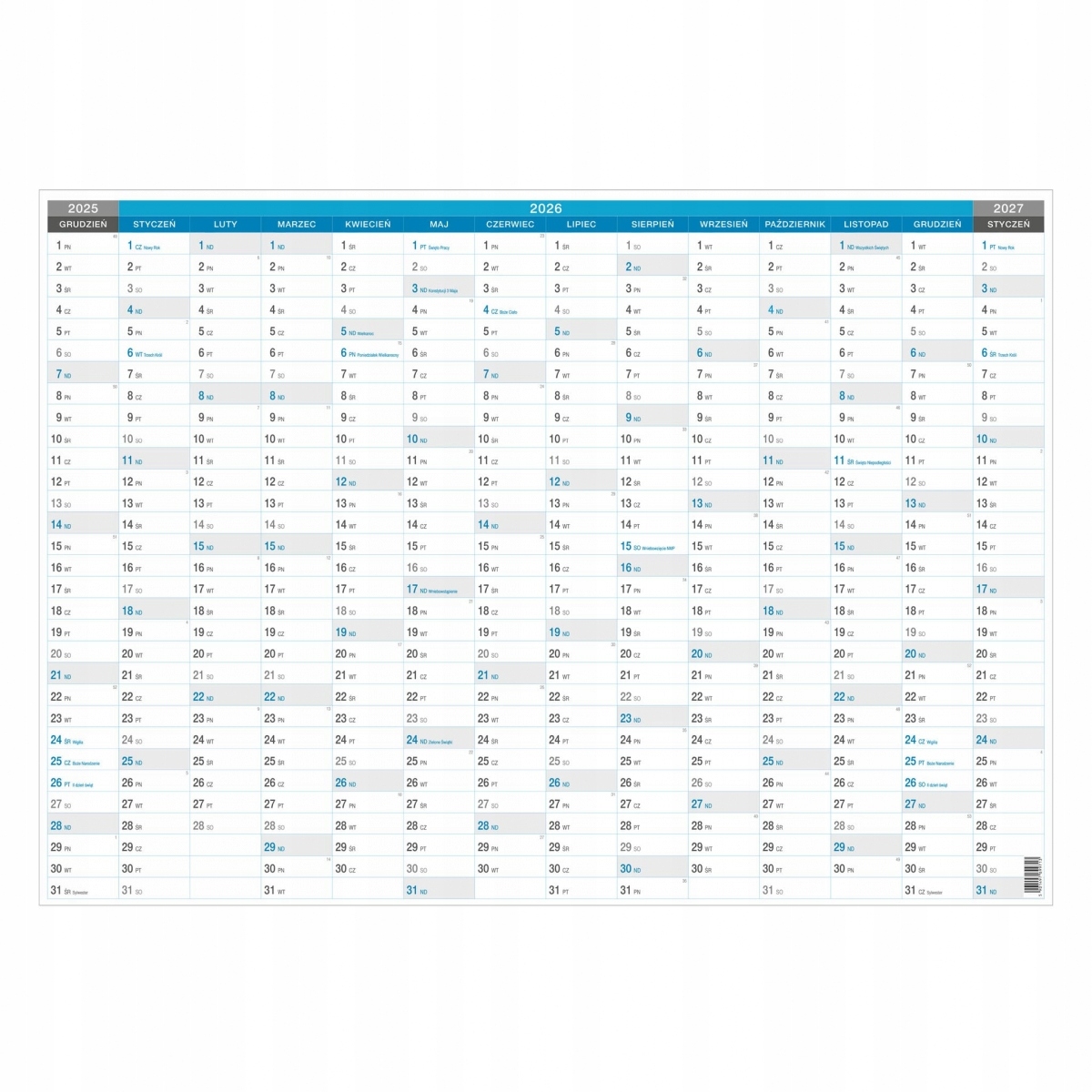 - календар, що охоплює весь 2026 рік, а також грудень 2025 року та січень 2027 року