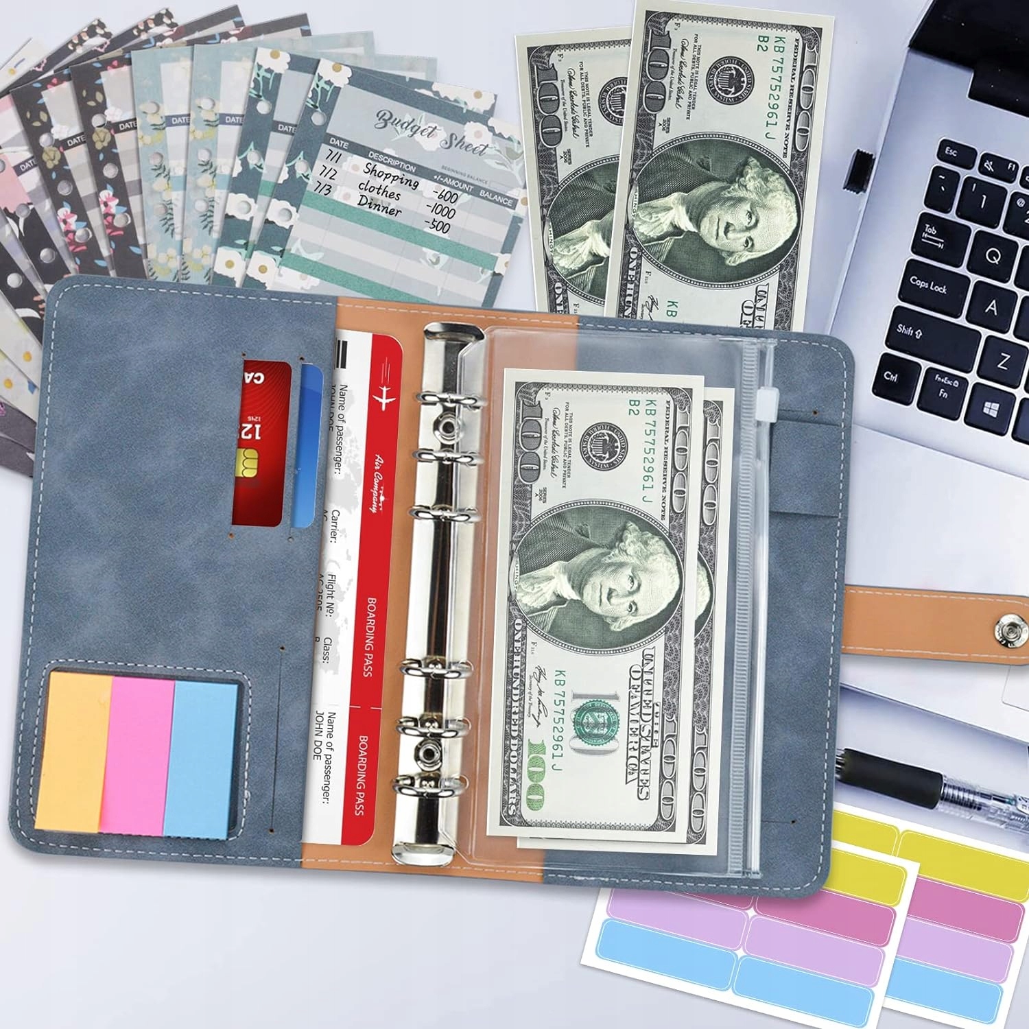Бюджетник, 26 елементів, шкіряний блокнот із прозорими чохлами, швидкозшивач, бюджетні картки, наклейки, зберігання грошей, ощадна книжка для подорожей і щоденник