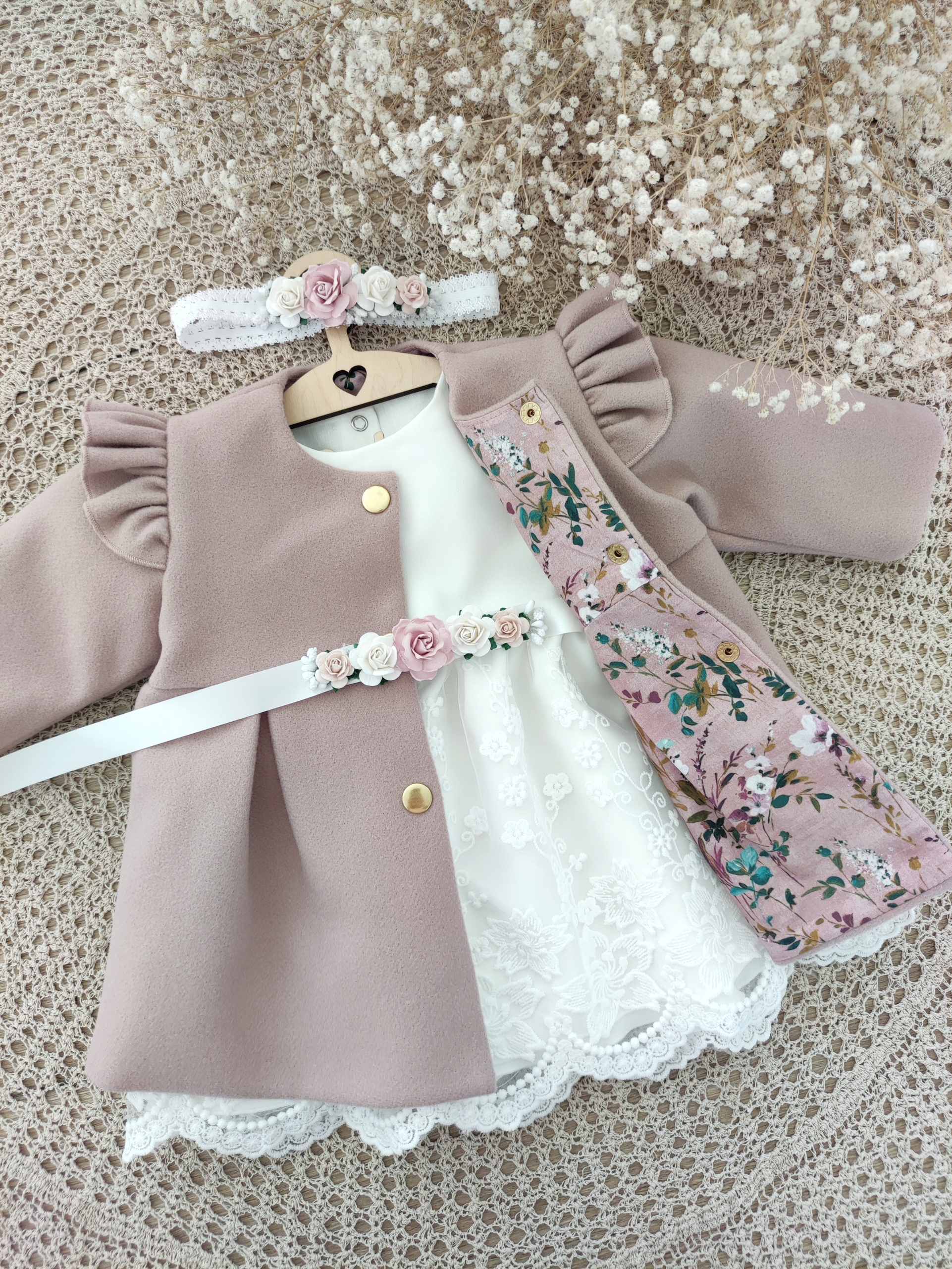 Хрестильне пальто з флісу з додаванням вовни чудових відтінків ідеально пасує до наших творінь.