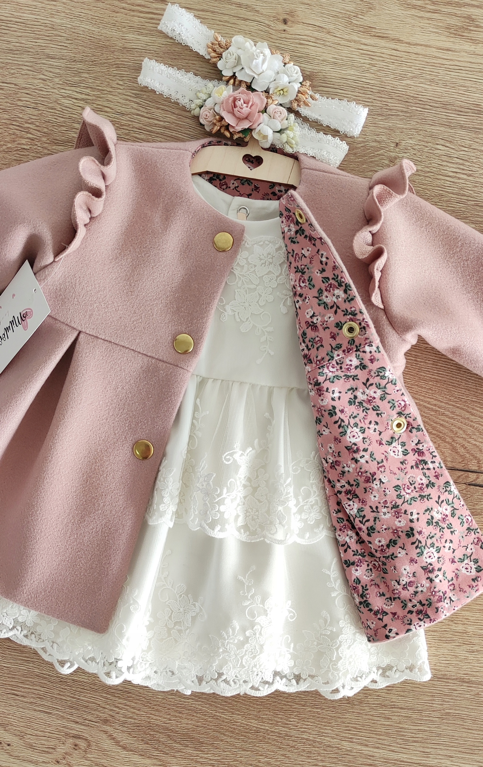 Хрестильне пальто з флісу з додаванням вовни чудових відтінків ідеально пасує до наших творінь.