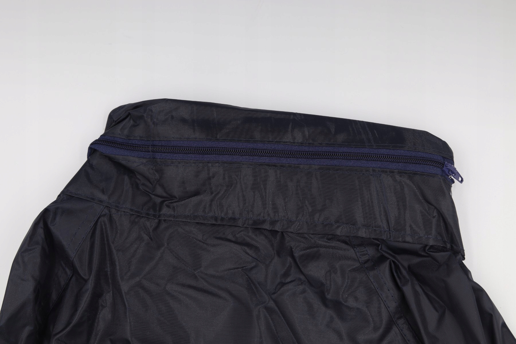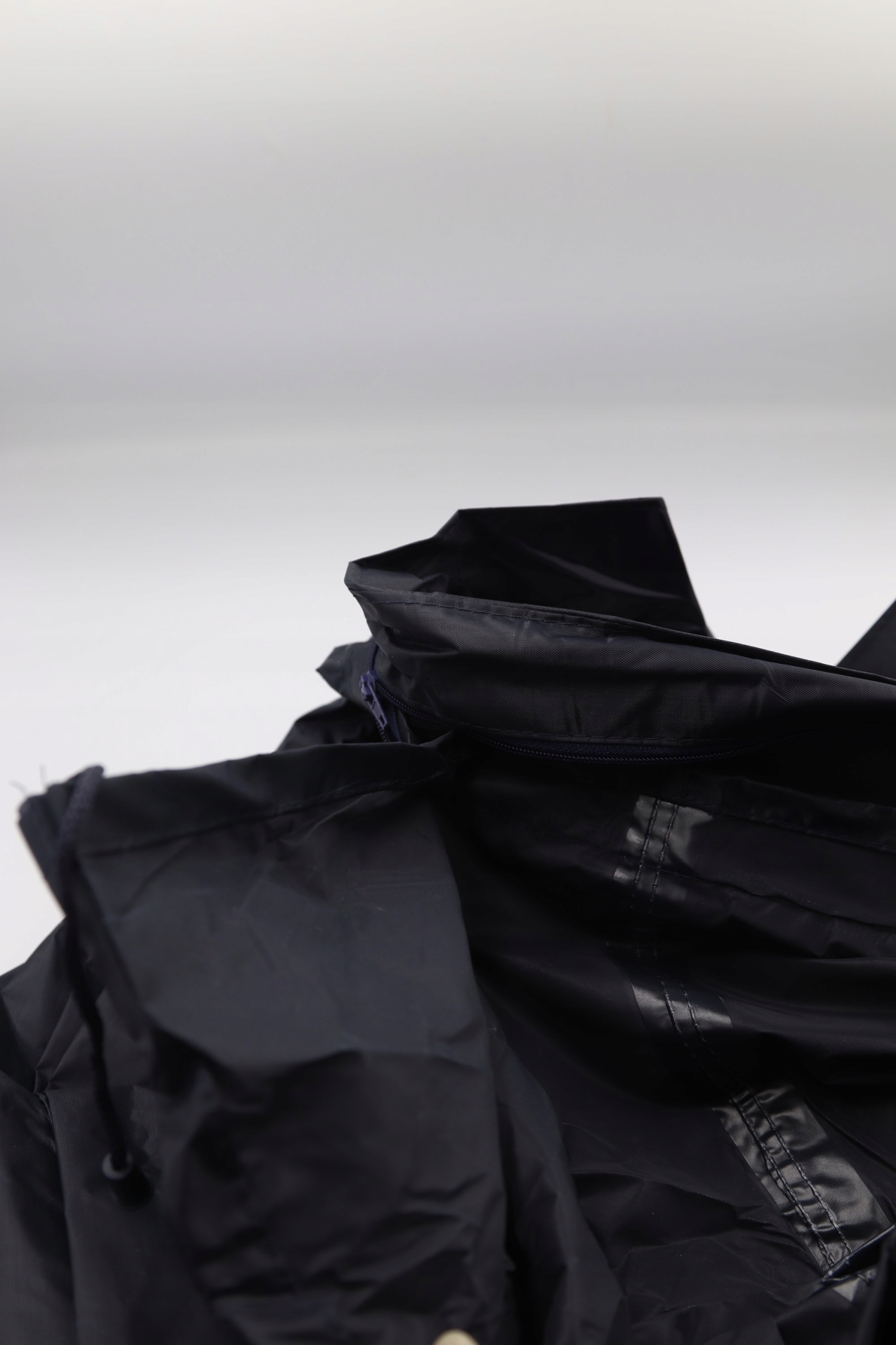 Захисний плащ виготовлений з високої якості тканини з 100% поліестеру/ПВХ , гарантує відмінний захист від дощу. Закріплений блискавкою та додатковими пресами. Гуд закритий на комірі та завантажені ремінці дозволяють швидко вміститися, забезпечуючи захист від повної голови.