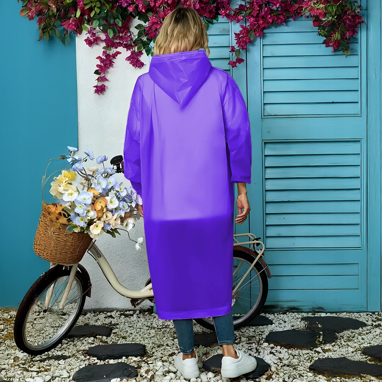 плащ був виготовлений з поліестеру високої якості, завдяки якому він є високо водонепроникним. на відміну від пластикових пластин він не зривається, тому це продукт багаторазового використання.