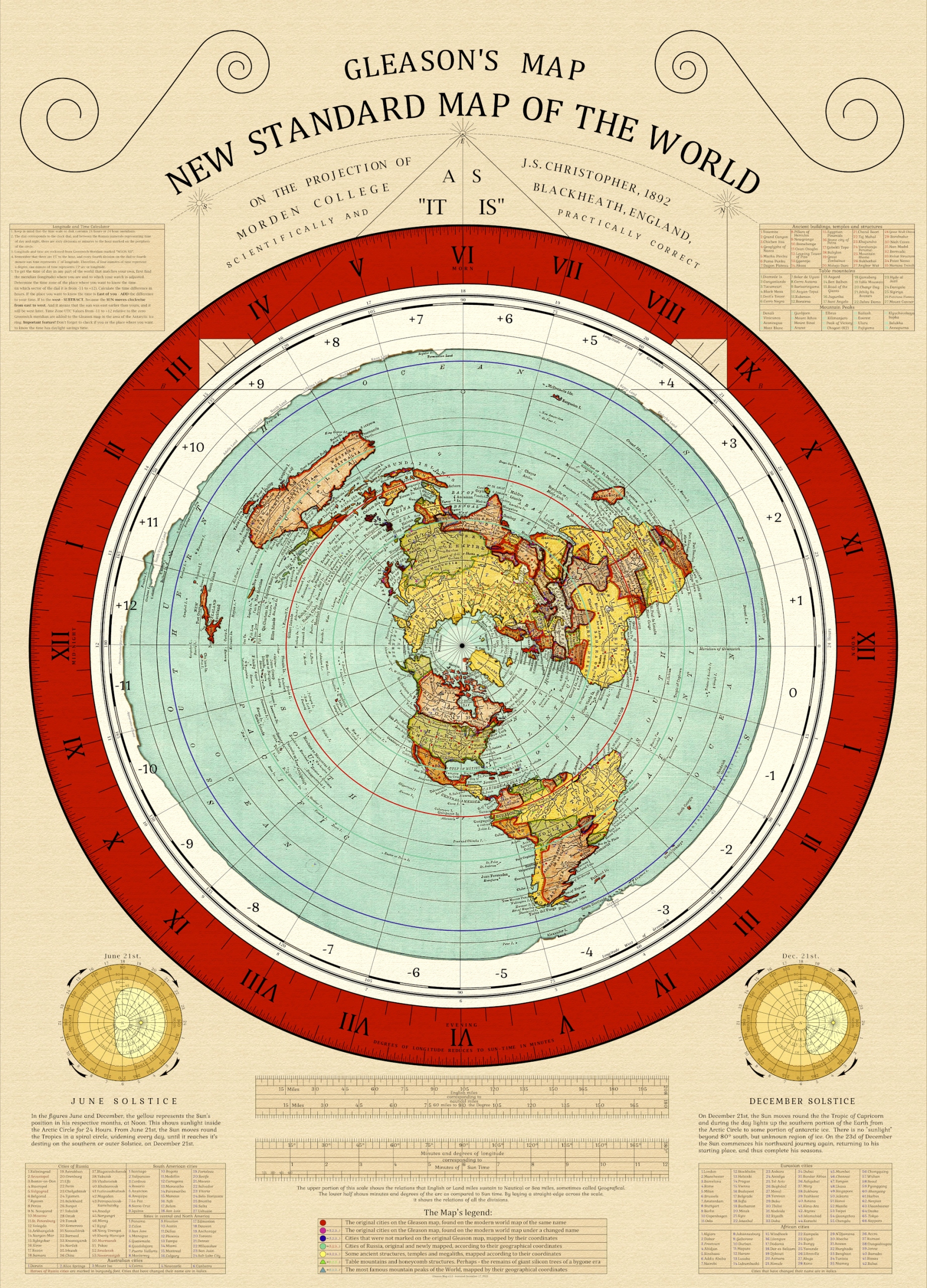 Плоска Земля Старий карта світу 1892 р. Глісон, Олександр 70х50см