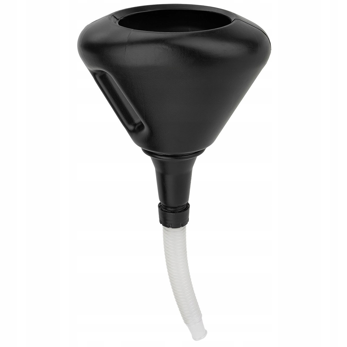 Воронка оснащений ситовим фільтром з високою ефективністю фільтрації, який затримує навіть дрібні домішки. Завдяки спеціальній формі вихідного патрубка підходить для більшості паливних бачок, в тому числі з засувкою або клапаном. Виготовлений з матеріалу, стійкого до хімічно агресивних рідин.