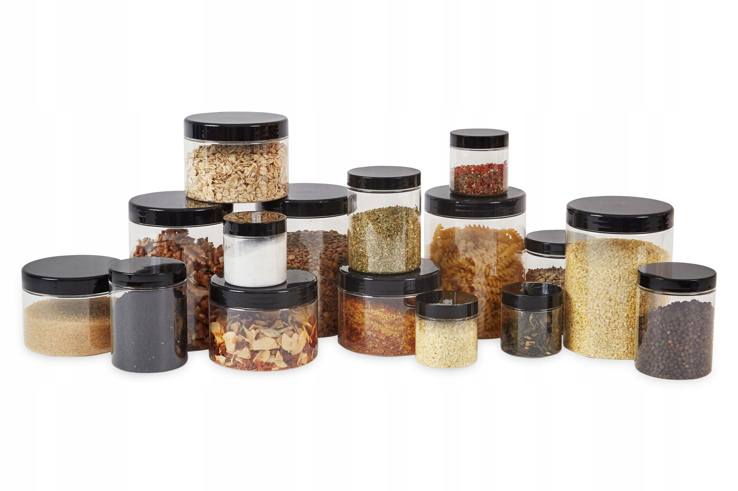 Гладка кришка з пластику точно прилягає до банки, що забезпечує герметичність і безпечне зберігання. Пластикові банки значно полегшують організацію місця. Через ПЕТ-матеріал не рекомендується мити банки в посудомийній машині чи використовувати в мікрохвильовій печі.