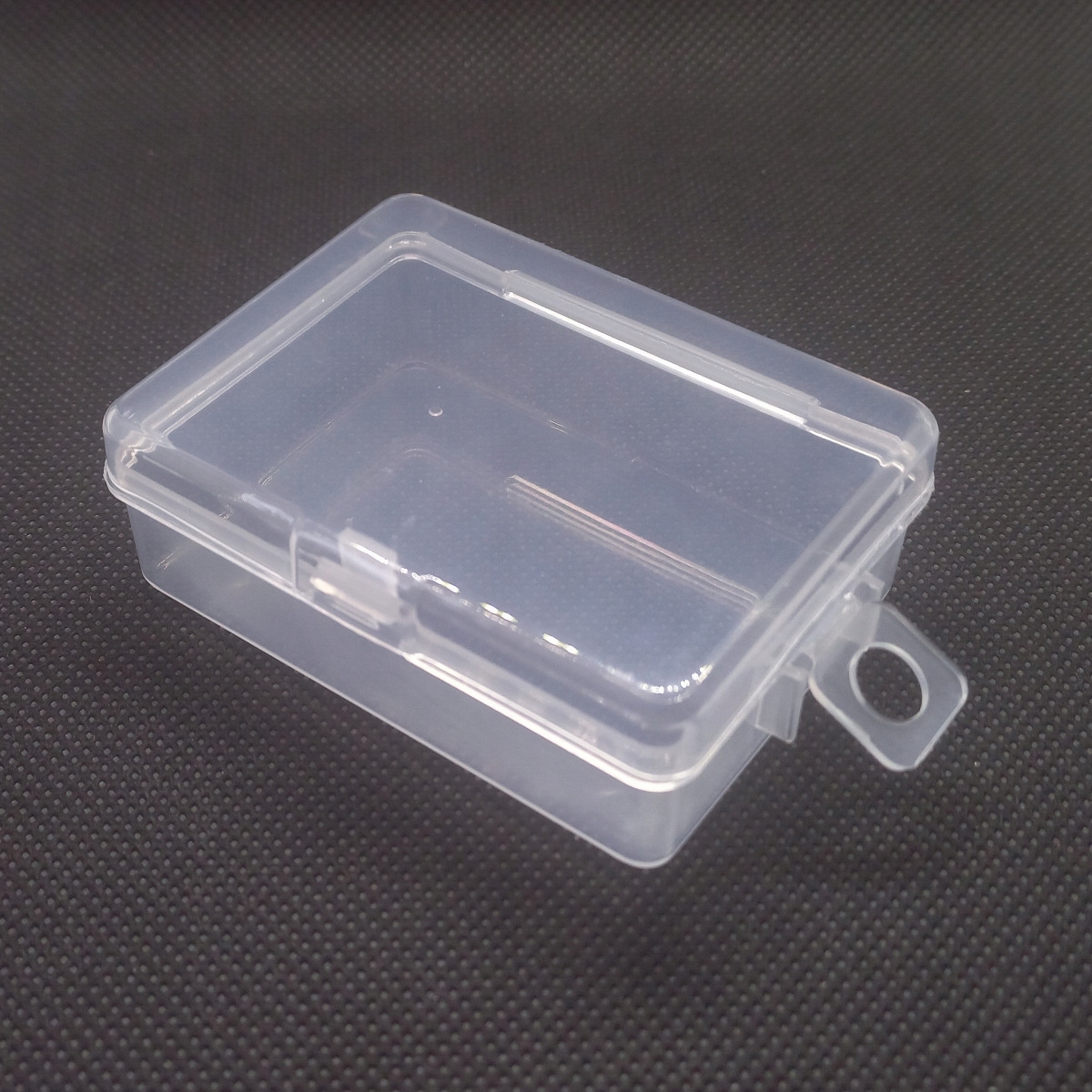 Закрита пластикова коробка розміром 6,7 см х 4,9 см х 2,3 см із вішалкою, зручна для зберігання дрібних елементів, які можуть бути втрачені або пошкоджені, наприклад, лавок, фігур, гвинтів.