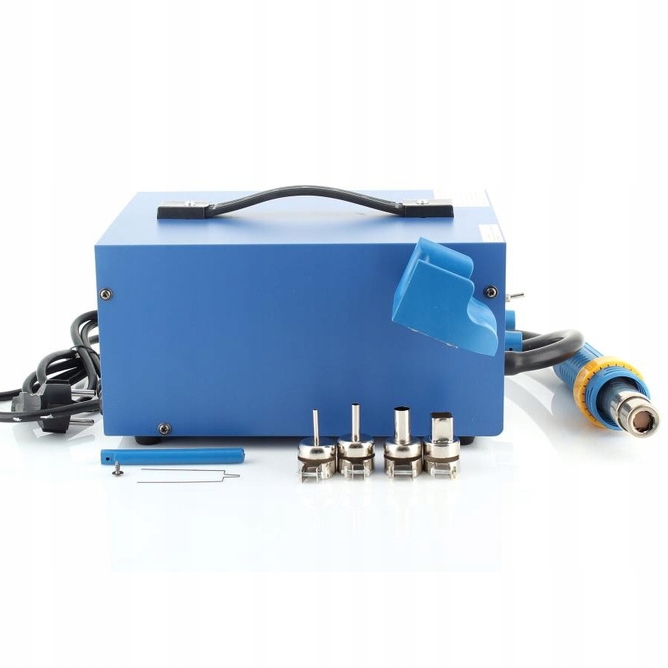 Пристрій працює зі стандартними підказками з гарячою анірами (Ø22mm Inlet), що дозволяє швидко замінити форсунки без необхідності використання адаптерів або спеціалізованих адаптерів. Набір включає набір з 4 різних порад (круглий та BGA), які дозволяють адаптувати повітряний потік до певного завдання - від зварювання вузьких прогалин для роботи на більших поверхнях . Гнучкість цього рішення робить зварювальник придатним для багатьох різних застосувань.