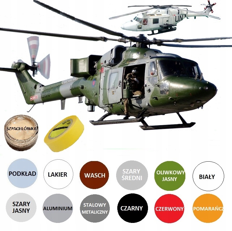 Модель гелікоптера для склеювання + грунтовка, фарби, лак, шпаклівка, змивка, моделююча стрічка