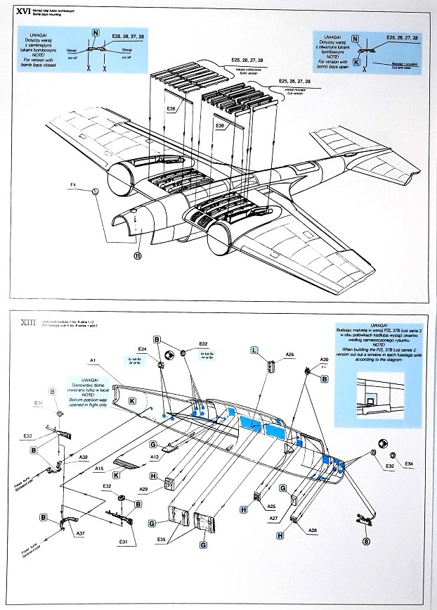 ДУЖЕ ТОЧНИЙ пластиковий макет літака для склеювання, польський бомбардувальник PZL 37B ŁOŚ та набір аксесуарів для виготовлення.