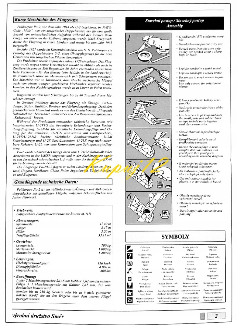 Пластикова модель Полікарпов По-2 Kukuruźnik Набір: фарби, пензлі, інструменти
