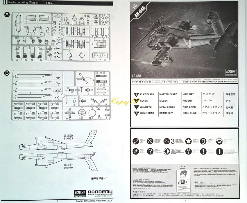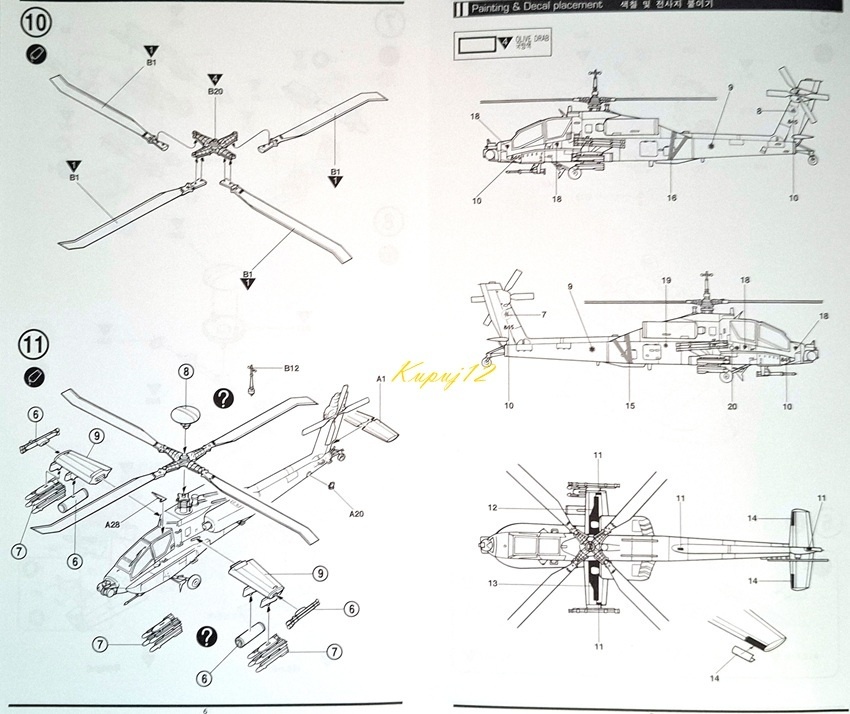 Пластикова модель вертольота IDF AH-64A Apache + килимок, фарби, клей, пензлі