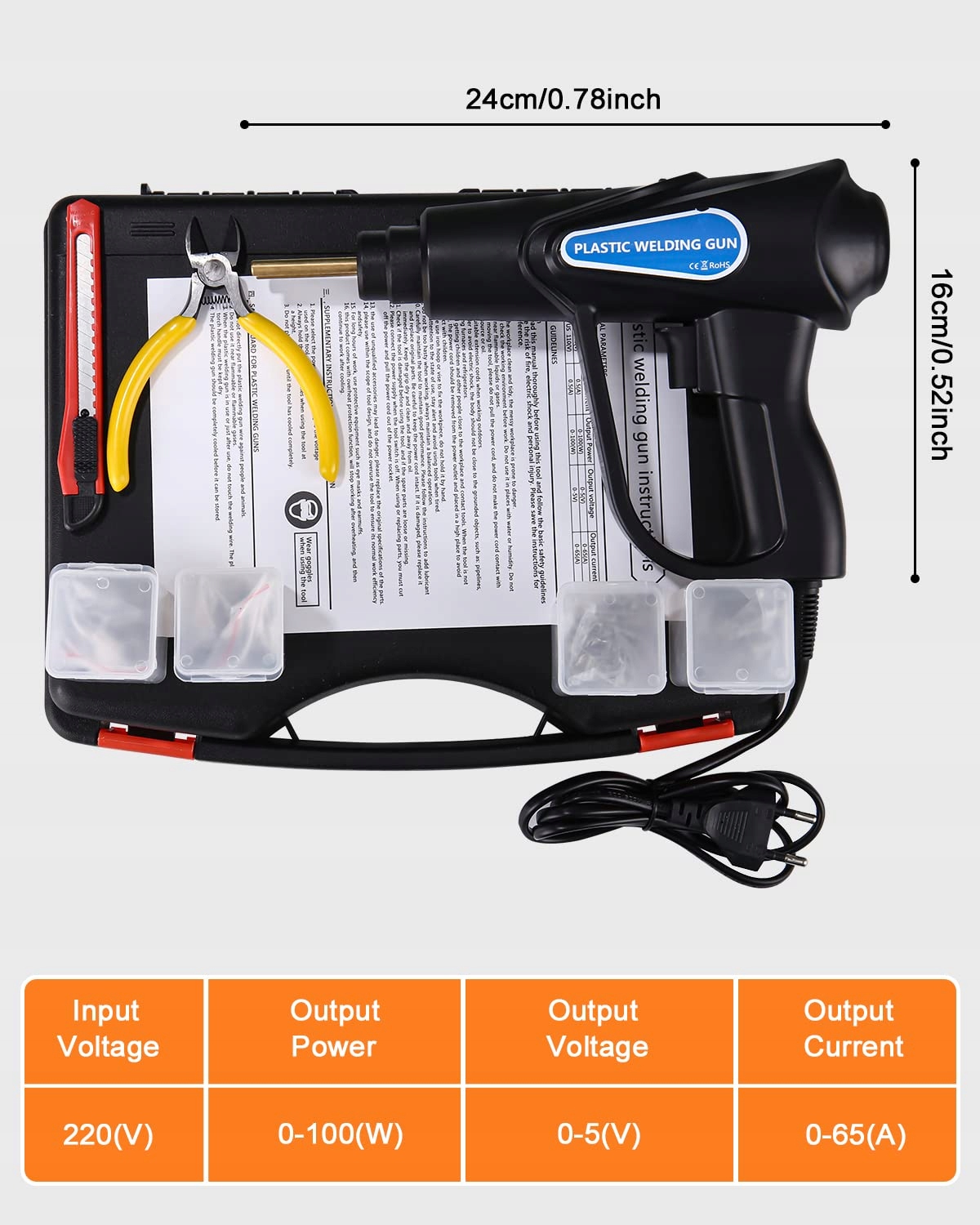 ✅ Цей пластиковий зварювач здатний відремонтувати майже всі типи пластику, доступні на ринку. Він ідеально підходить для прикріплення різних пластикових виробів, таких як бампери, панелі приладів, розетки світильників, пластикові кільця, ручки, фари, пластикові крила та пластикові елементи кріплення до автомобілів та мотоциклів. За допомогою цього інструменту ви також можете швидко і легко зварювати гарячі скоби в пластику.