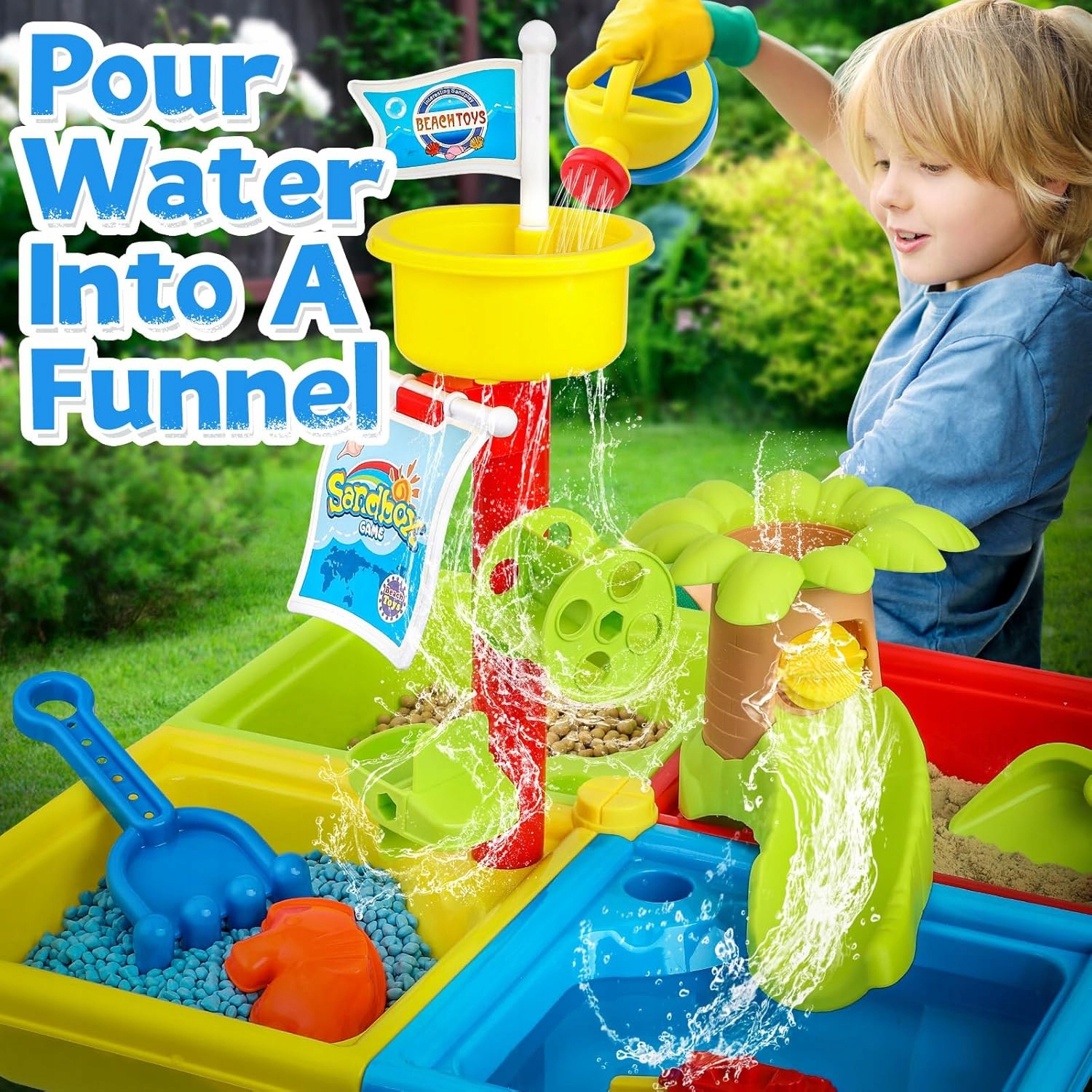 - Набір з 33 аксесуарів для водного столу з піском : зовнішній водний стіл для дітей оснащений воронкою, прапором, вітряною водою, водонапірною баштою, відро, поливами, човном, човном, лопаткою, грабленням, смі, що займається циклом, і маленькими навичками, і тим, що може грати спільно з дітьми. 4 Це легко встановити для дітей за допомогою батьків, згідно з інструкціями встановлення, представленими на малюнку, яка розвиває практичні здібності дитини. Легко чистити та зберігати. 4 Також ідеальний подарунок для дітей на кожен випадок, вечірку, день народження, Різдво, Великдень та свята на 1 3 4 5 6 7 8-річні маленькі діти, хлопчики та дівчата.
