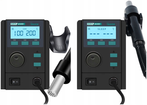 - emement Emmement з наглядом цераміка> обігування. Повітряна колба оснащена режимом сну - надягаючи колбу (перемикач/перемикач) на ручку причини, що станція автоматично охолоджує твердий нагрівач до 100 ° С і перетворює вентилятор