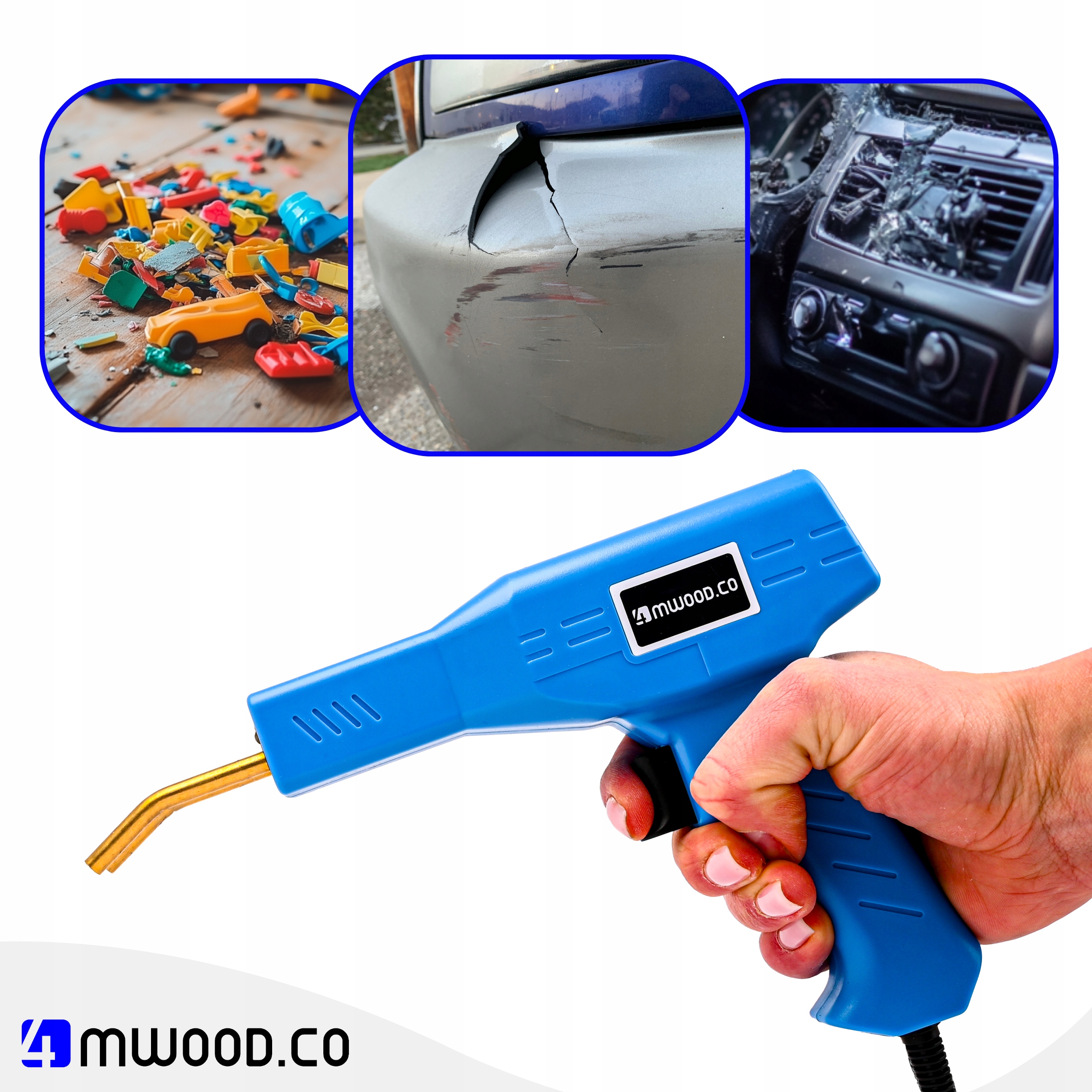 Пластикова зварювальна машина продається в наборі з чотирма типами скоб , що дозволяє відновити різні типи пошкоджень: