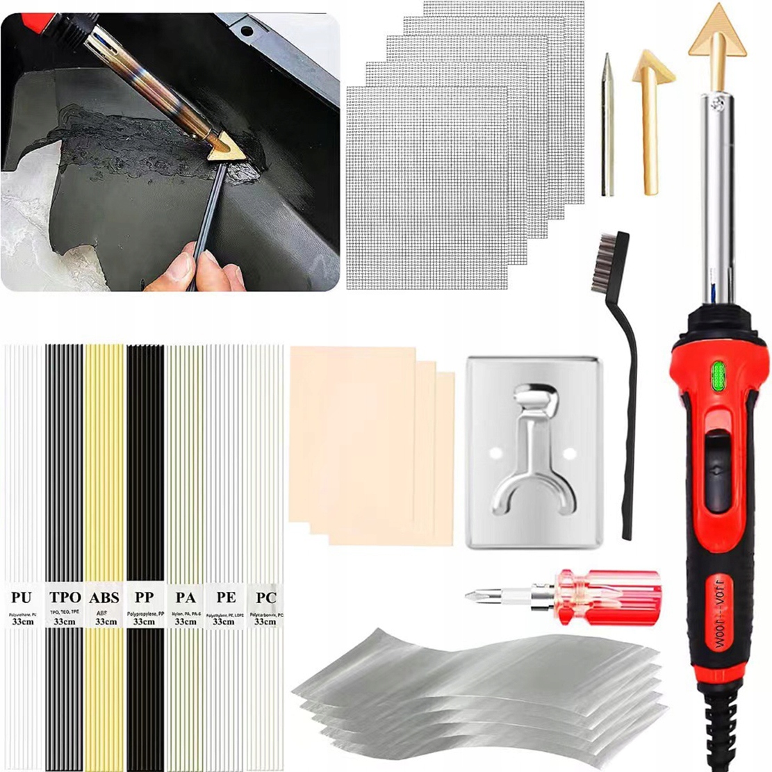 Зверніть увагу на ремонт пластикових поверхонь, ми поєднали 5 колючих дротів + 3 губки + 5 алюмінієвих фольг, щоб зробити ваш ремонт більш професійним. 2 розширені голови