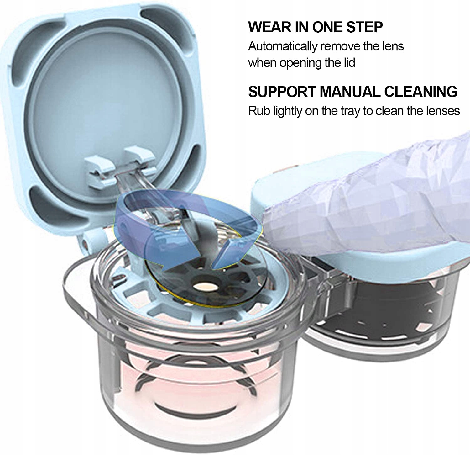 Автоматичний підйом Лінза з відкритим візором автоматично піднімається без використання інструментів, і її можна підняти безпосередньо пальцями. Вишуканий корпус і легкий корпус легко носити з собою. Можливе ручне очищення, обережно потираючи лоток для очищення лінзи, підтримуючи коробку гігієнічною та чистою, запобігаючи розмноженню бактерій та забрудненню лінзи, потраплянню її в очі та викликанню запалення очей. Плями від фільтра Плями від фільтра та закрийте кришку, об’єктив автоматично впаде в нижній лоток, щоб відокремити плями від об’єктива. Він дуже зручний і допомагає зберегти ваші лінзи гігієнічними. Він не займає місця і його можна помістити в кишеню або сумку. Його можна взяти в будь-який час у разі надзвичайної ситуації, а лінзи можна зняти та помістити в футляр для окулярів, коли виникає дискомфорт. Здоровий і нетоксичний Виготовлений зі здорових і безпечних нетоксичних матеріалів, його можна використовувати без будь-яких турбот, він не зашкодить лінзам і очам і захищає здоров'я очей. Зручний для щоденного використання.