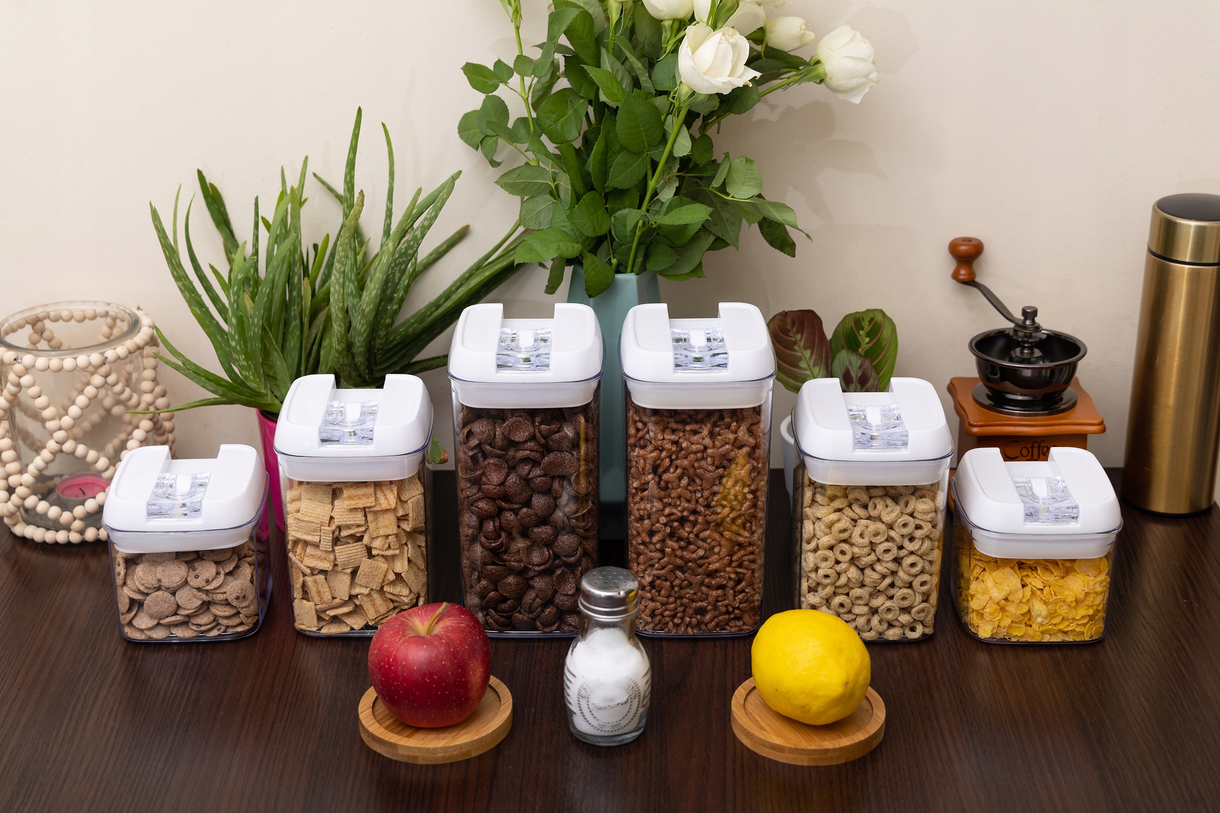 Кожна з цих ємностей оснащена міцною пластиковою кришкою, яка забезпечує герметичність і захищає ваші продукти від вологи та втрати свіжості.