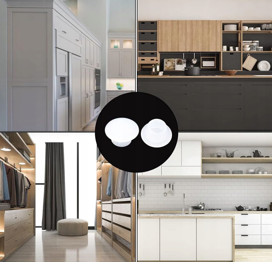 - Заглушки для отворів — це найпростіший і найдешевший спосіб приховати непривабливі плями. Білий колір може підкреслити положення отворів і зробити меблі більш красивими та виразними.