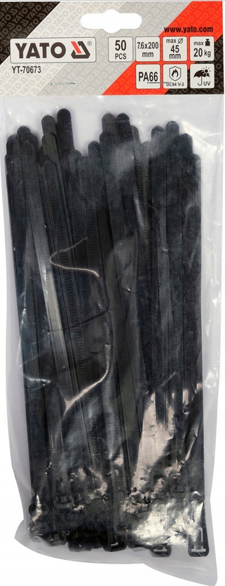 пластикові смуги, незмінні 7,6х200 мм 50 шт. Чорний