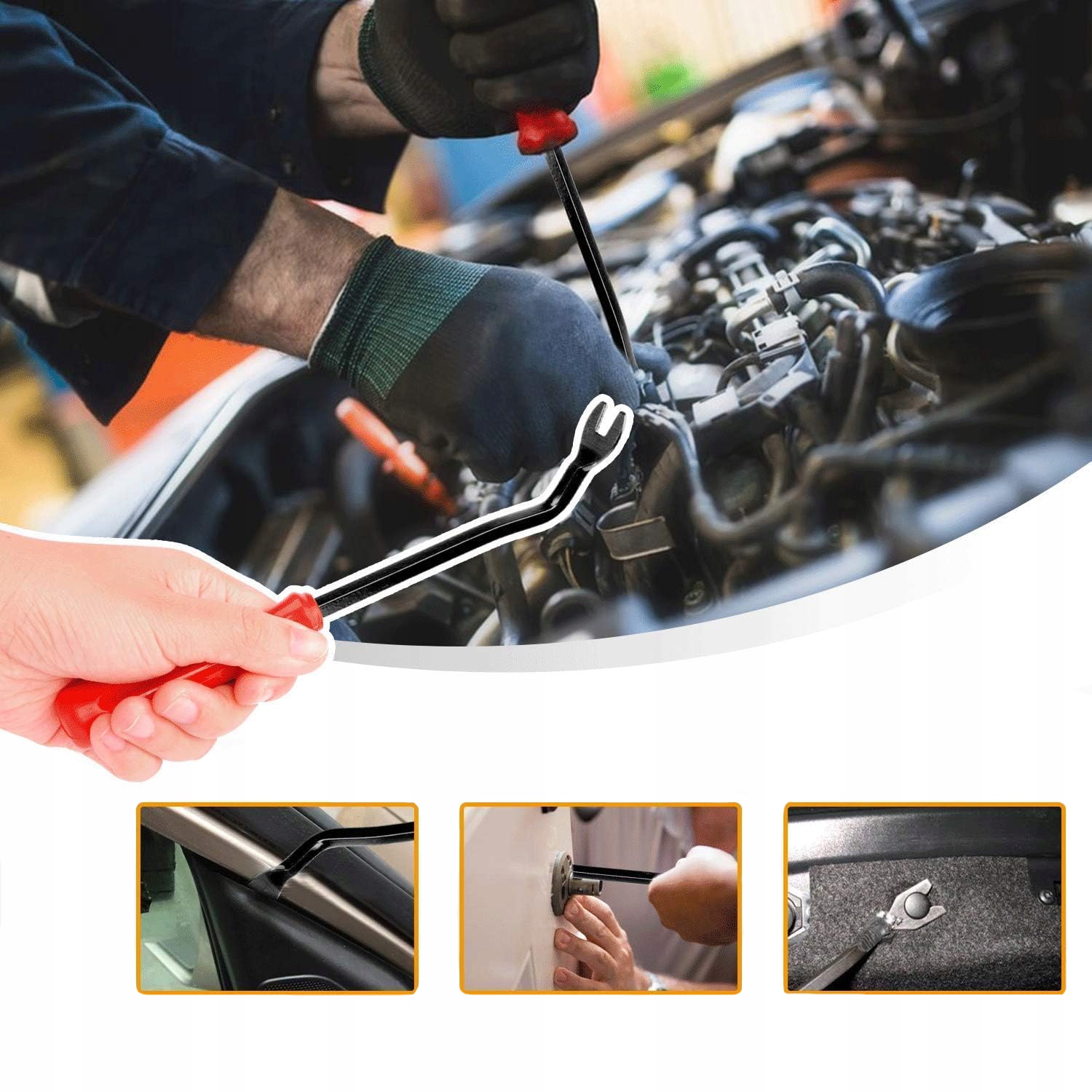 Широкий діапазон застосувань: доступний у 12 популярних розмірах, набори каркасів широко використовуються в автомобільних панелях, затискачах для декоративних панелей, затискачів дверної рами, затискачів дверних панелей, затискачів бамперів, затискачів крил, капотів, а також заміна кронштейнів панелей є звичайною для більшості моделей.