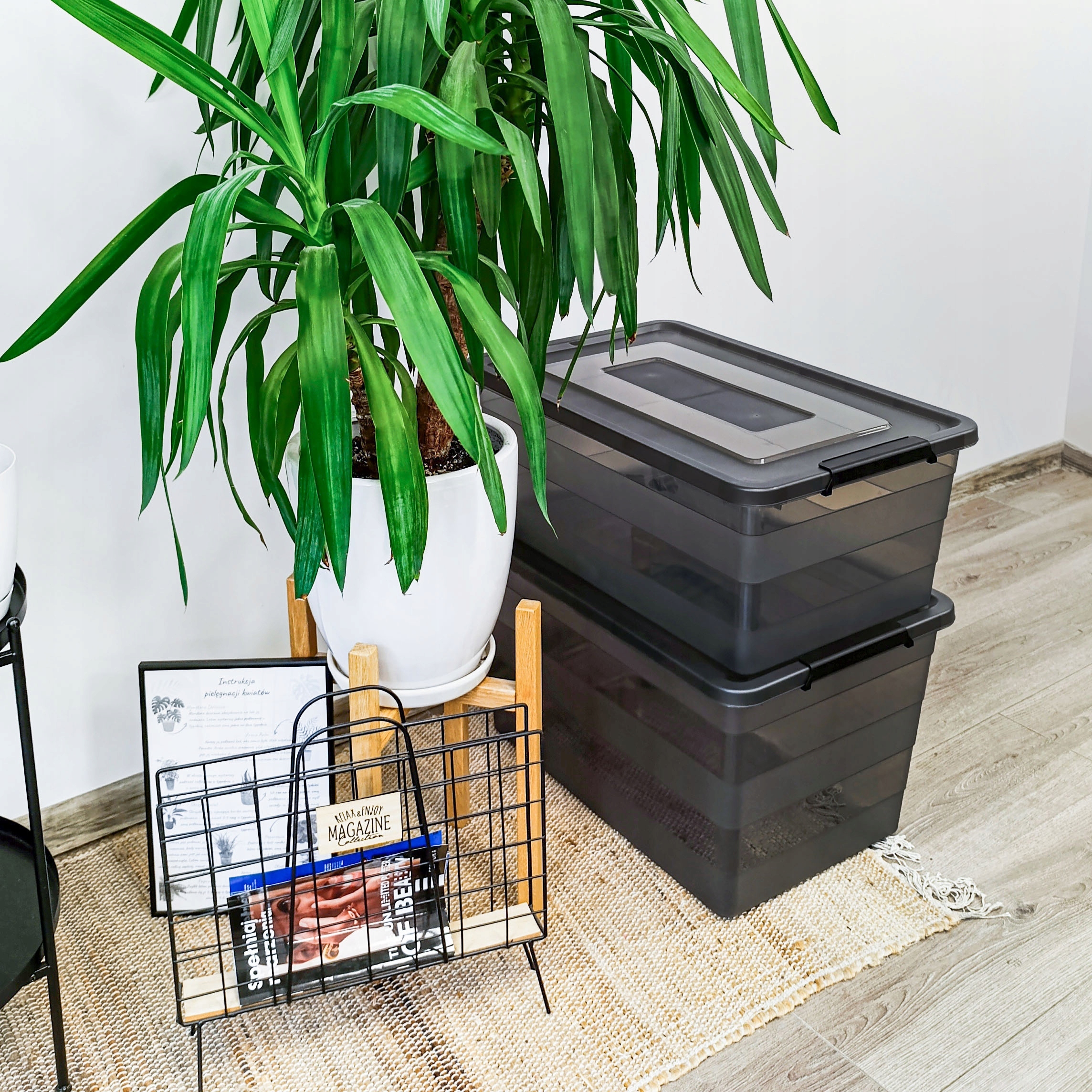 Контейнер характеризується міцною конструкцією та функціональним дизайном. Завдяки кришці, що закривається на засувки, ви можете зберігати свої речі, захищаючи їх від пилу та бруду. Оскільки коробки стійкі, їх можна складати одна на одну, що економить ще більше місця!
