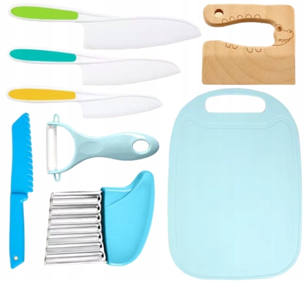 Пластиковий кухонний набір для дітей. Приготування різання аксесуарів 8el. 4 Пальці : Kid Safe Kitchen Tool має делікатні краї, завдяки яким дитина не буде боляче під час використання. Ручка анти -слизу покращує точність різання. Це може забезпечити безпеку дітей, які ніколи не працювали з ножами.