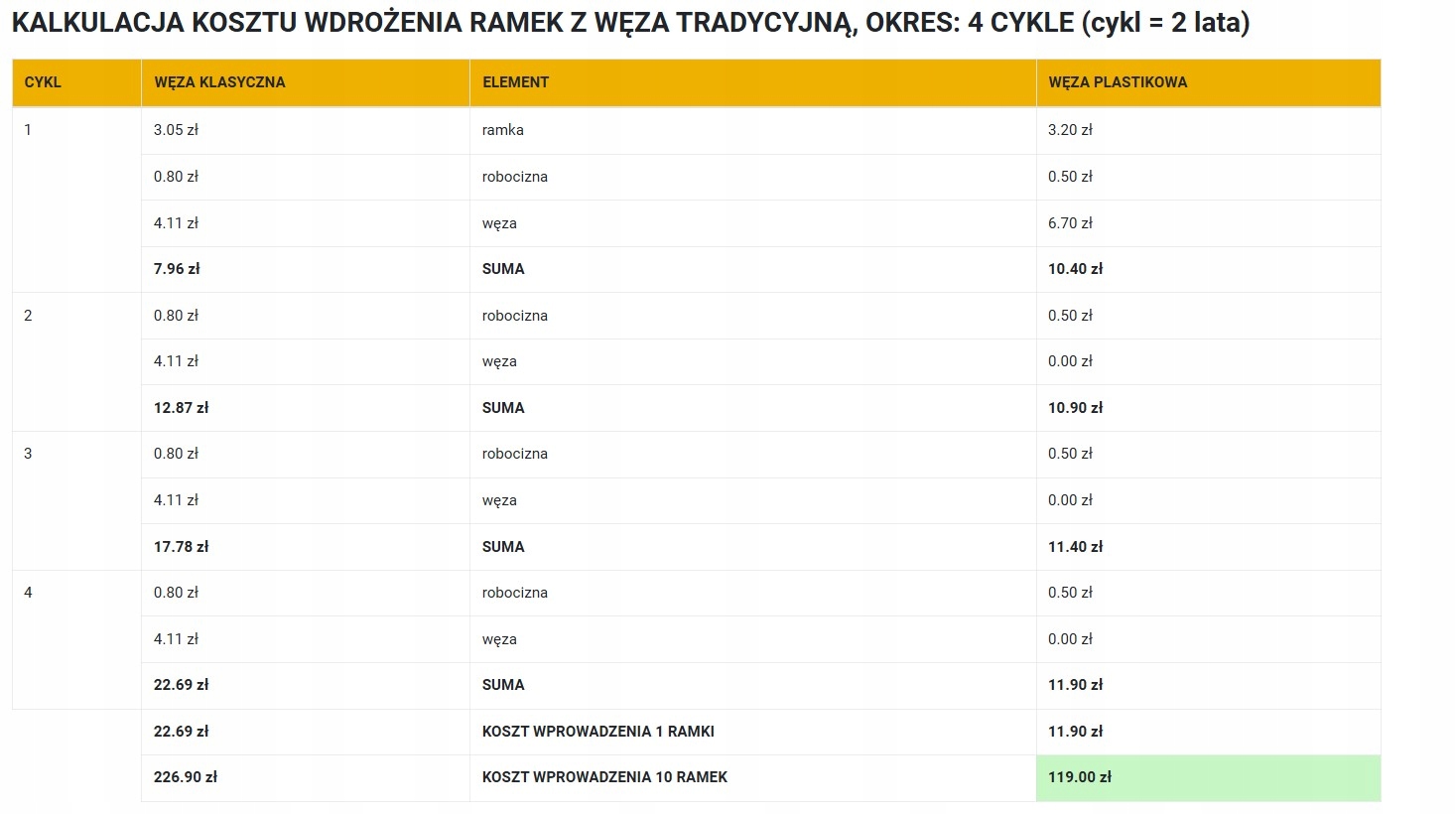 Найкращі результати досягаються, коли гнізда розміщуються в період сильного медоносу та в сім’ях у хорошому стані – тоді реконструкція є надзвичайно ефективною. У плані управління ви можете припустити 2 цикли (приблизно 4 роки із заміною 50% рам на рік), але шланг можна використовувати довше; Популярною альтернативою є трирічний цикл із заміною приблизно 30% рам на рік. Ефективність і якість рішення були підтверджені в проекті P. Blajer «Здорова та інноваційна пасіка» - оптимізація управління пасікою за рахунок використання шлангових листів в ін'єкційних технологіях для поліпшення самопочуття бджіл і якості бджолиної продукції.