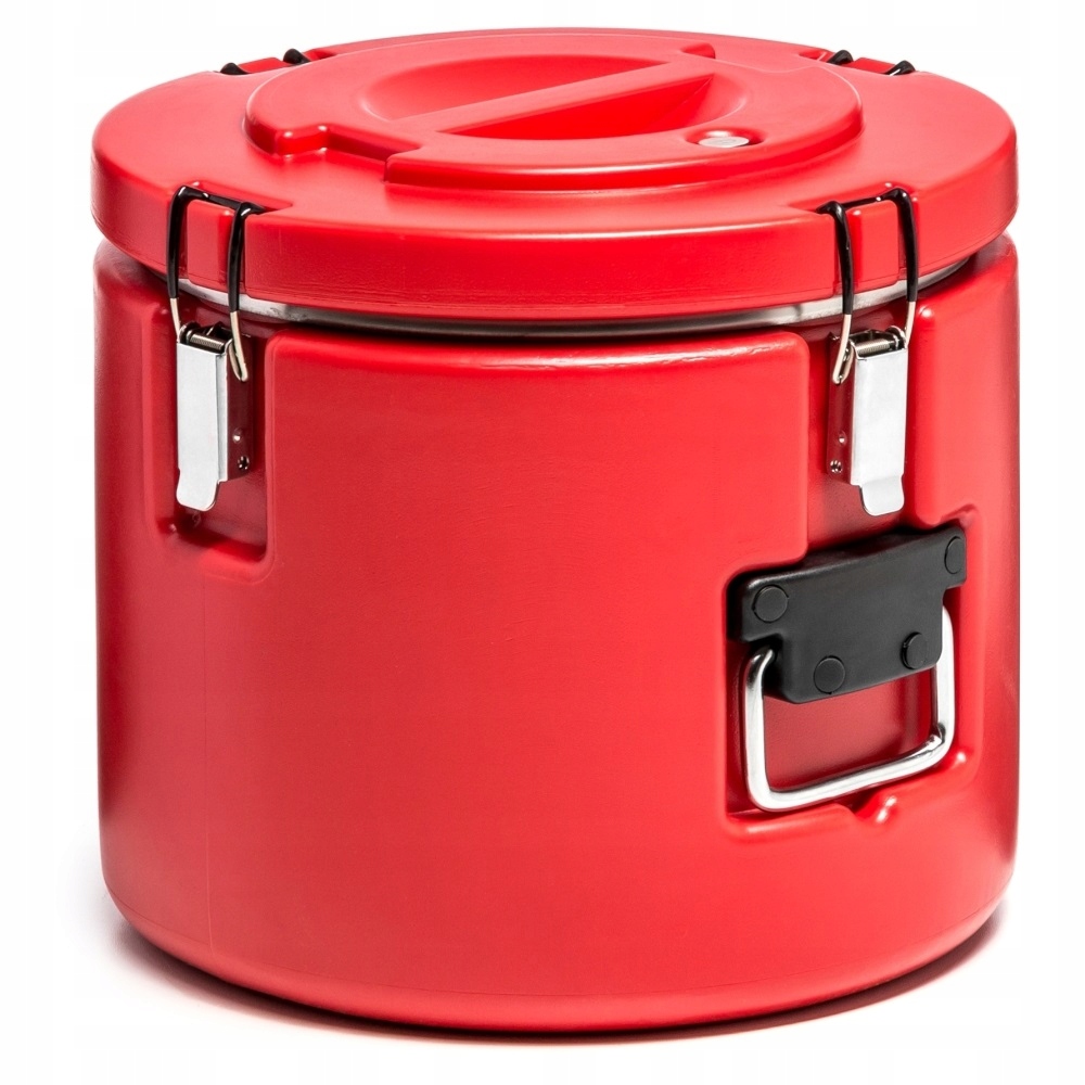 Термос для транспортування їжі фірми Forgast об'ємом 15 літрів - виготовлений з полірованої сталі. Корпус з пластику, стійкого до вм'ятин і подряпин. Дуже хороша теплоізоляція завдяки простору між стінками, заповненому спеціальним ізоляційним матеріалом і герметичному покриттю. Термос зберігає їжу гарячою від 6 до 8 годин.