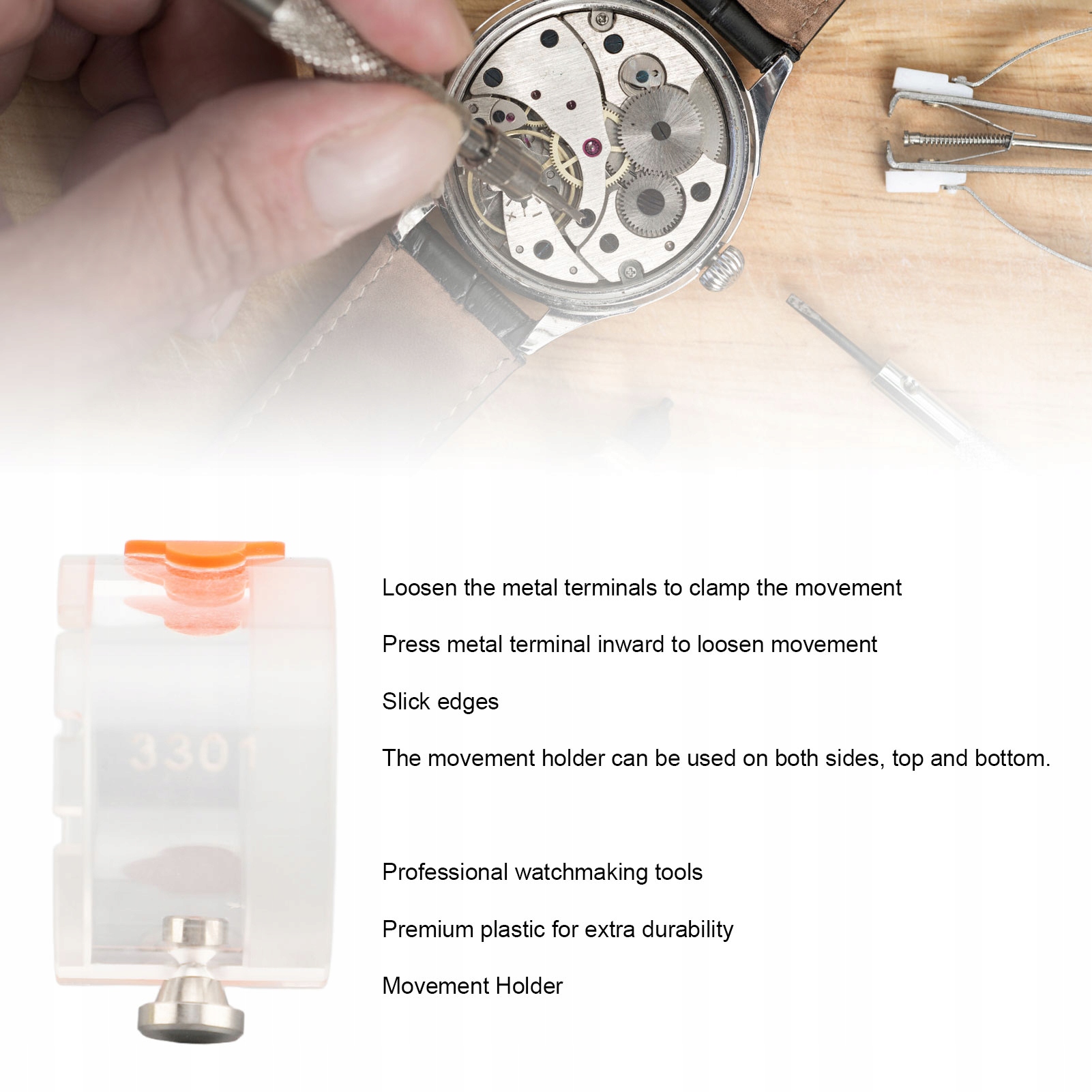 3. Професійний інструмент для ремонту годинників: Професійний інструмент для ремонту годинників підходить для багатьох моделей годинникових механізмів. Ідеально підходить для професійних годинникарів, це важливий інструмент у ящику годинникаря.